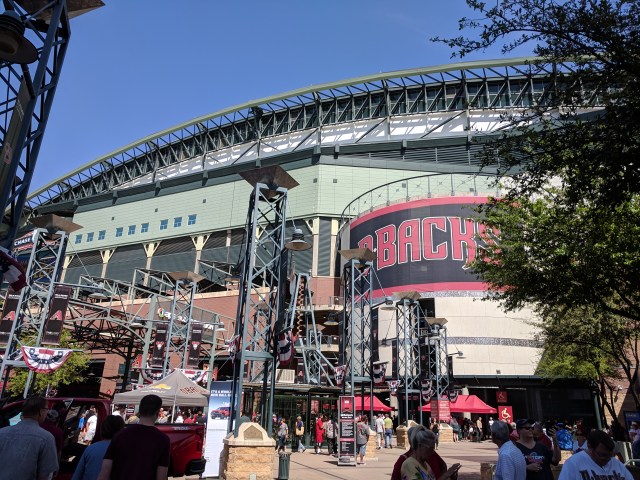 The spring has arrived. I know this, not because it has stopped snowing in Chicago, but because baseball season has arrived. As Josh & I continue our tour of stadiums, we are attending opening weekend at Chase Field in Phoenix. Number 18 on our tour. We decided to attend the first two games of the year.