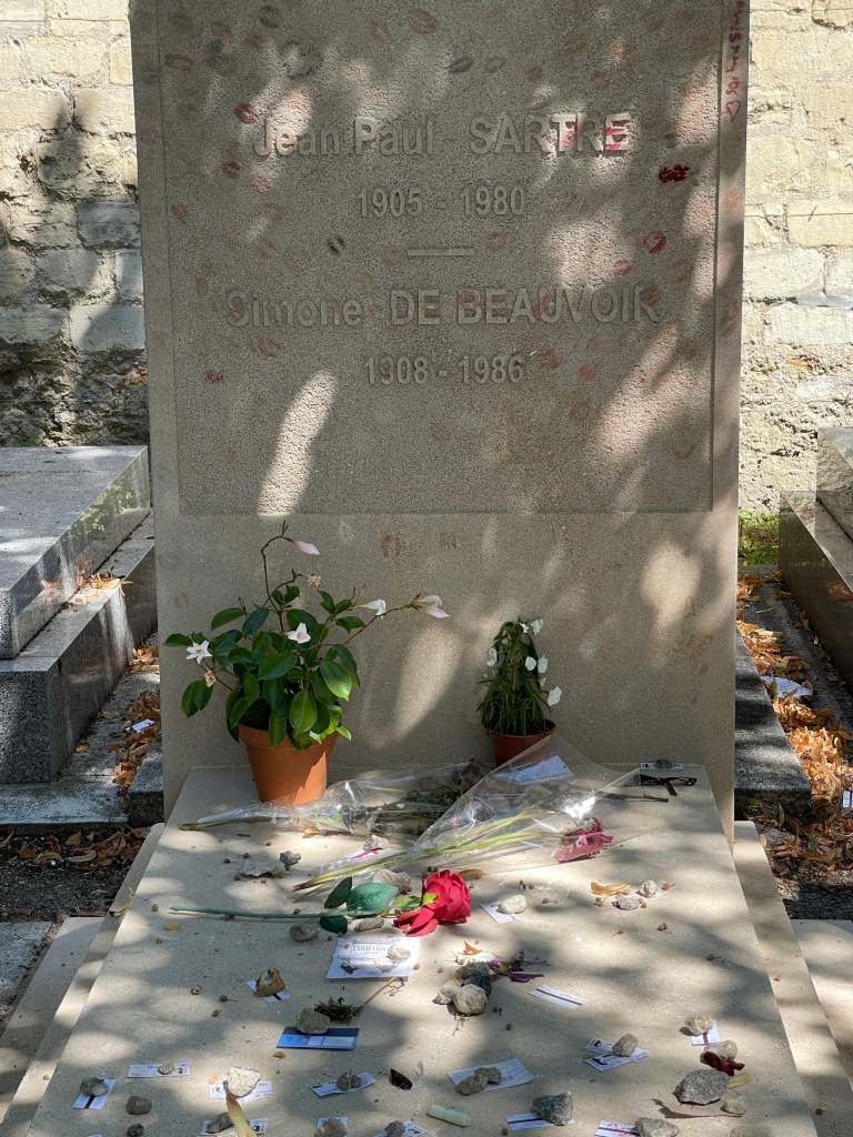 With our bellies happy (perhaps – our tongues happy and our bellies full) we hit the Metro and headed for the Luxembourg Gardens. We had a nice wander in the park for an hour or so and then went to the bookstore. Despite their website saying they were open, we were disappointed to find that they were not. Sorry Aunt Marcella, but we promise we will head back next week – when the sign on the door says that they will be open – and pick it up. We headed back through the park for a late addition to our schedule, the Montparnasse Cemetery to honor my no doubt now disappointed aunt by visiting the grave of Jean-Paul Satre. We left the gardens and walked right into another park called the Garden of the Great Explorers, which was dedicated to Marco Polo. It is a cute little park that had a great fountain in it. We navigated to the cemetery, where they have quite kindly buried Satre and Simone De Beauvoir right near the entrance to help idiots like us find them easily. We play a bit more dead people bingo by finding Susan Sontag and Charles Beaudelaire and then were done with finding dead people (at least for today).