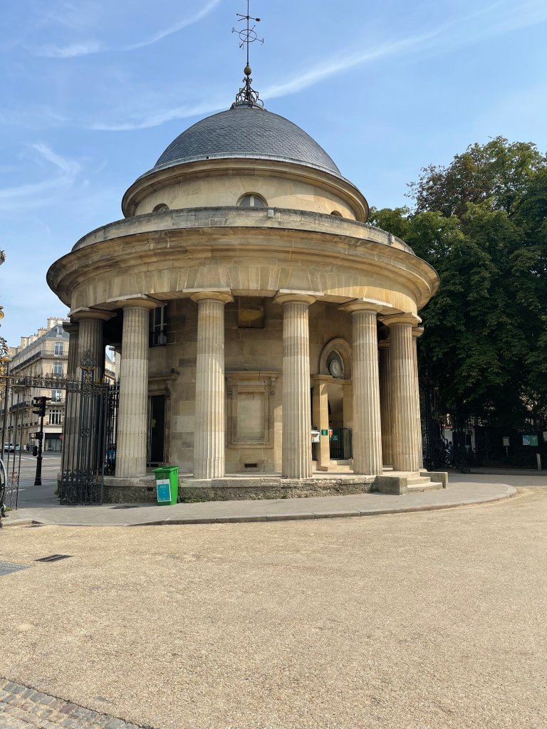 On Saturday morning, we decided to walk from our apartment to Sacré-Cœur, about 5.5km, and stop a few places along the way. We walked up Rue Victor Hugo, passed the Arc De Triomphe and along Avenue Hoche, which led us right into Parc Monceau. One of our friends from Chicago recommend the parc by telling us that it has the “most beautiful public bathrooms in the world.” What she meant was that the bathrooms were housed in a really great building, but we will get to that. The park itself is fabulous; it isn’t very large, but holds lots of interesting features, including a somewhat odd installation related to the smurfs. The bathrooms are housed in a Pantheon-style domed building, which is very nice to look at, but the bathrooms themselves were awful. Just an FYI.
