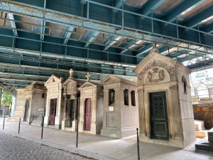 As mentioned at the start of the post, we went to Montmatre Cemetery. One of the interesting things about it, is that Rue Caulaincourt runs right over the cemetery, so some of the crypts are right under the road and reach right up into the girders. We once again played dead person bingo, finding Alexandre Dumas, Émile Zola, Léon Foucault, François Truffaut, Jeanne Moreau, Vaslav Nijinsky and despite some resistance, André-Marie Ampère – sorry couldn’t pass up that joke.