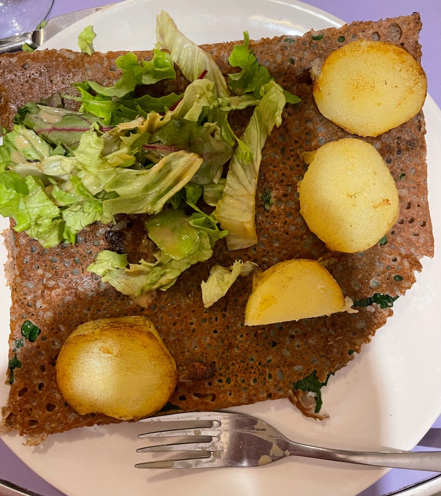 We exited the store and realized that it was only noon, so we still had lots of time. We decided to head to the Latin Quarter, just to look around. We took the Metro to Châtelet walked across Île de la Cité, gazed at Notre-Dame (the damage was not really visible from our point of view) and then into the Latin Quarter. By now it was lunchtime so we headed for a creperie called La Petite Bouclerie. We had a nice leisurely lunch, the food was great (and also our first French food) and relaxed. Once we were ready we headed out to wander the Latin Quarter.
