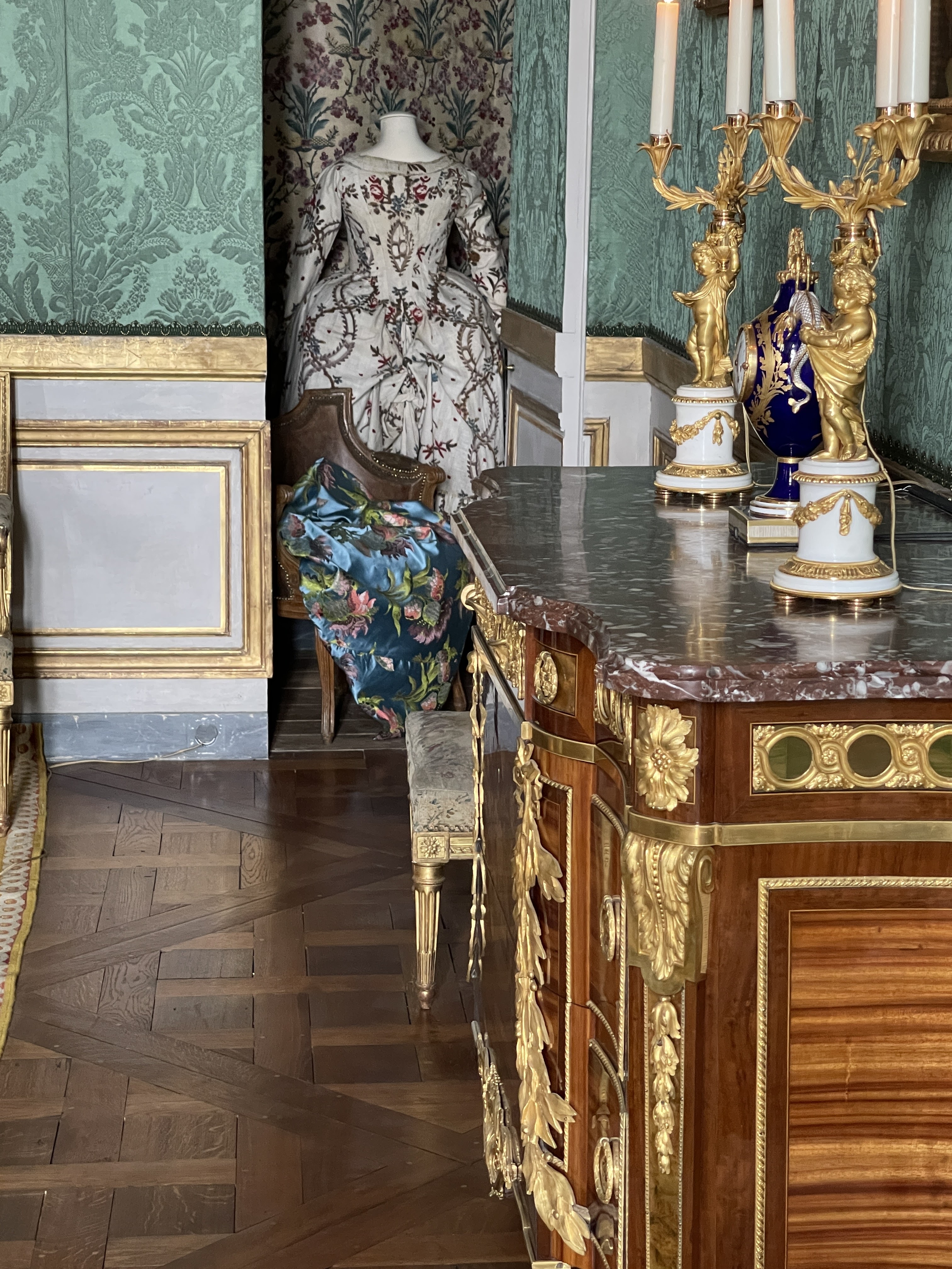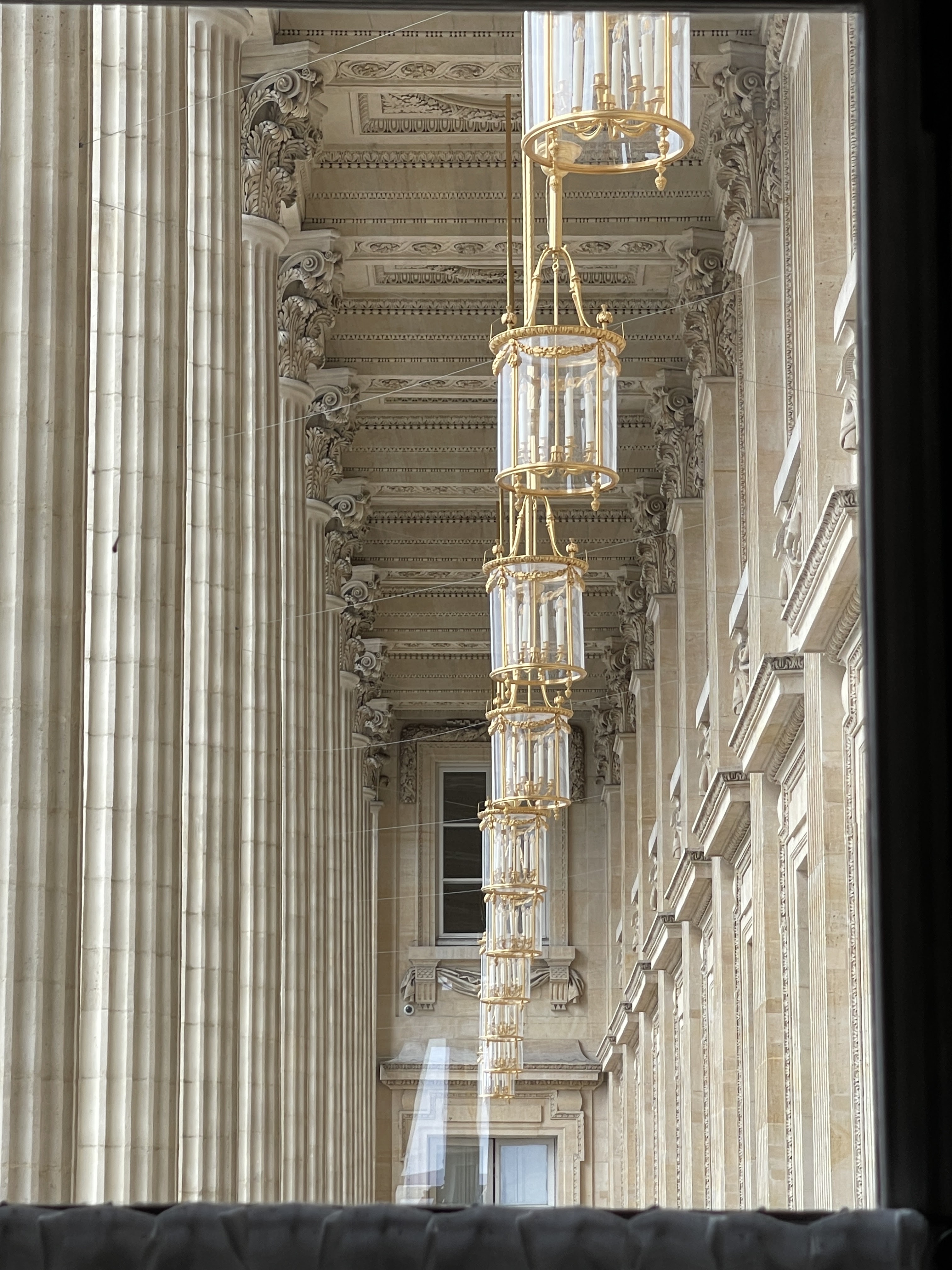 Sunday, we had petit dejeuner (I just like saying that). Steven had un croissant avec café au lait and I had un café allongé avec des pain au chocolat because I had to. Next, on the recommendation of the lovely French couple we met last week, we went to the Hôtel de la Marine, which is not a hotel but did house the French Navy. The building has been restored to its former glory – if you think it’s glorious that Marie Antoinette’s death warrant was signed there. It is beautiful. There are also four different audio tours you can choose. We tried to choose two different ones, but both ended up with “Traveling through Time.” No complaints from either of us. We both enjoyed it (except for the fact that the maid was named Susan). Pictures below.