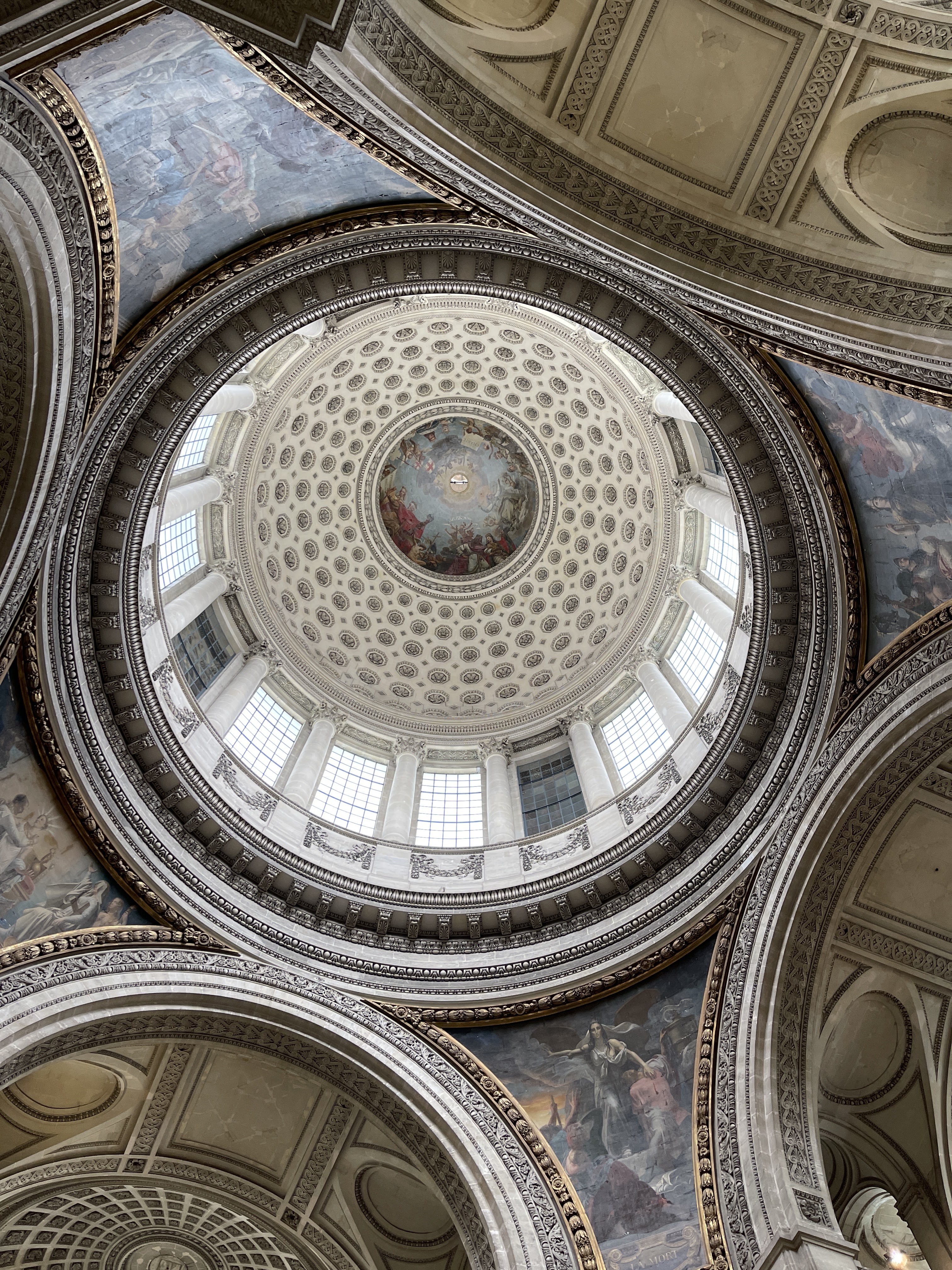 Finally, on to our last dead person bingo: the Pantheon. These very famous French people are lined up neatly in crypts along a hallway with alcoves housing several each. We didn’t even need a map to find anyone since their names are conveniently posted on the wall outside each alcove. So, we saw the real Alexandre Dumas, along with Marie and Pierre Curie, Voltaire, Emile Zola, Louis Braille, Jean-Jacques Rousseau and Victor Hugo (my new hero since we kept bumping into his memory wherever we went).