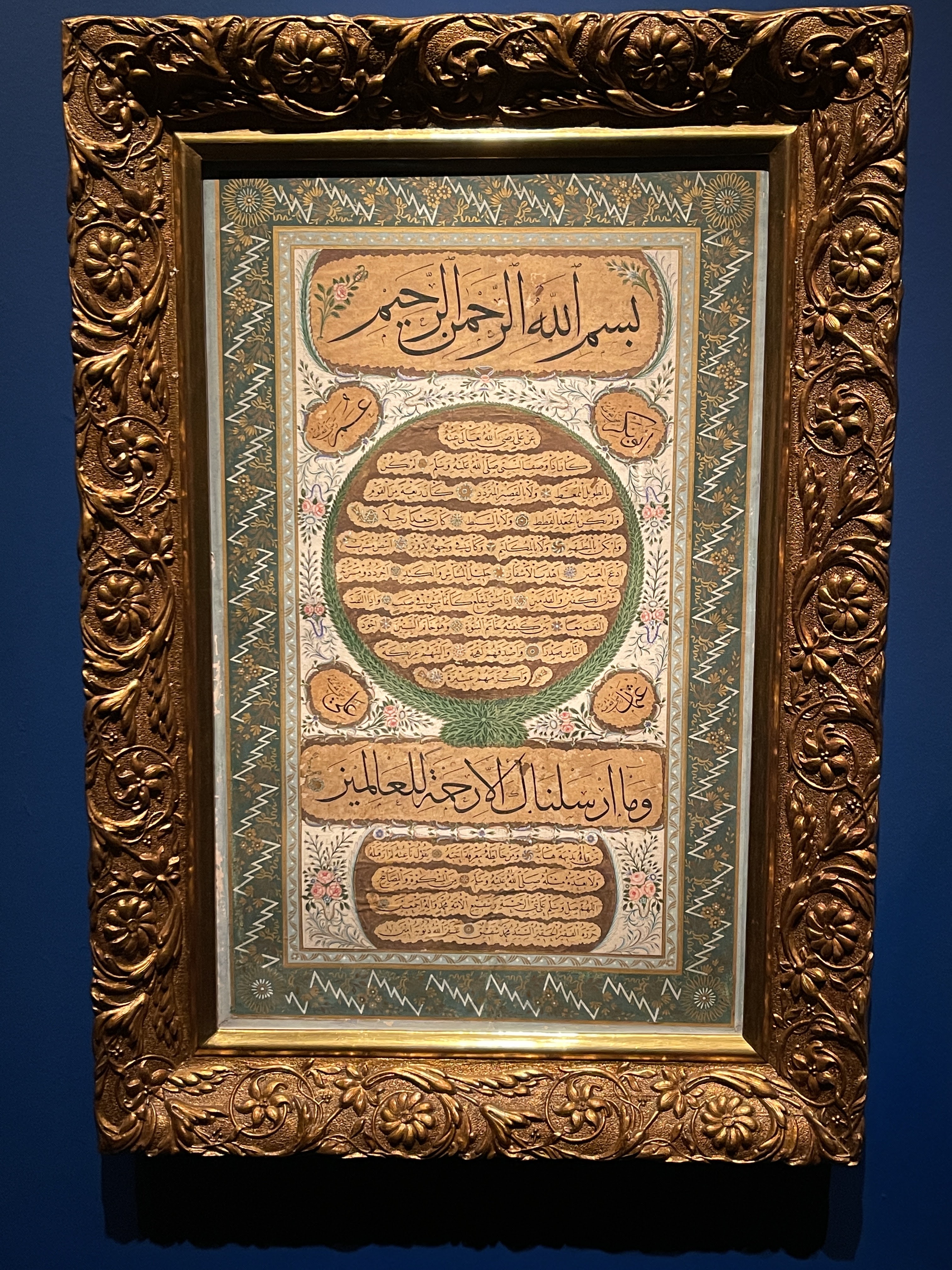 Saturday we decided to only go to two places. First a museum call the Sakıp Sabanci Museum and then on the way home, we were going to stop at the Rumeli Fortress. Once again, we examined our trusty(?) Trafi app and determined that the only way to get to the museum would be to take a bus. We headed to the bus stop and waited. The bus we were supposed to be on did not arrive at all, so we grabbed another that would get us as far as Ortaköy. We quickly amended our plans, and decided that once we were in Ortaköy we would grab lunch. Sue could have kumpir (the loaded potatoes that we wanted to try) and I would have another dürüm, this time with lamb. My potato was delicious!