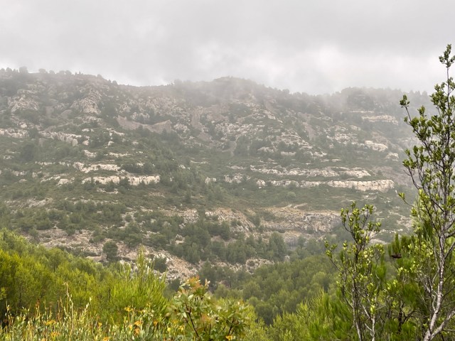 Saturday, Abi was flying home from Marseilles. Our plan was to rent a car, drive to Calanques National Park, hike for a while, drop Abi at the airport and then come home. Unfortunately, the weather gods were not cooperative. It rained all day, and we did not bring our wet weather hiking gear, so we had to abandon our hikes. Instead, we decided we would have a late lunch and then take Abi to the airport. For the first time that I can remember we found that Google had incorrect information about restaurant hours. We tried three different places, all of which were listed as open, but none of which were. We finally settled on grocery store take out. Not our most memorable Saturday, but it is always nice to spend time with my daughter. There were a few successes: we managed to drive a couple of miles into the park and find a nice photo spot, we had an interesting tour of Marseilles including a “road” called Impasse du Moroc – which was nearly one car wide, and our rental car was a sweet little Mercedes. (I think maybe Steven has been convinced to buy a Mercedes in Germany, drive it around and ship it home. Win for me!)
