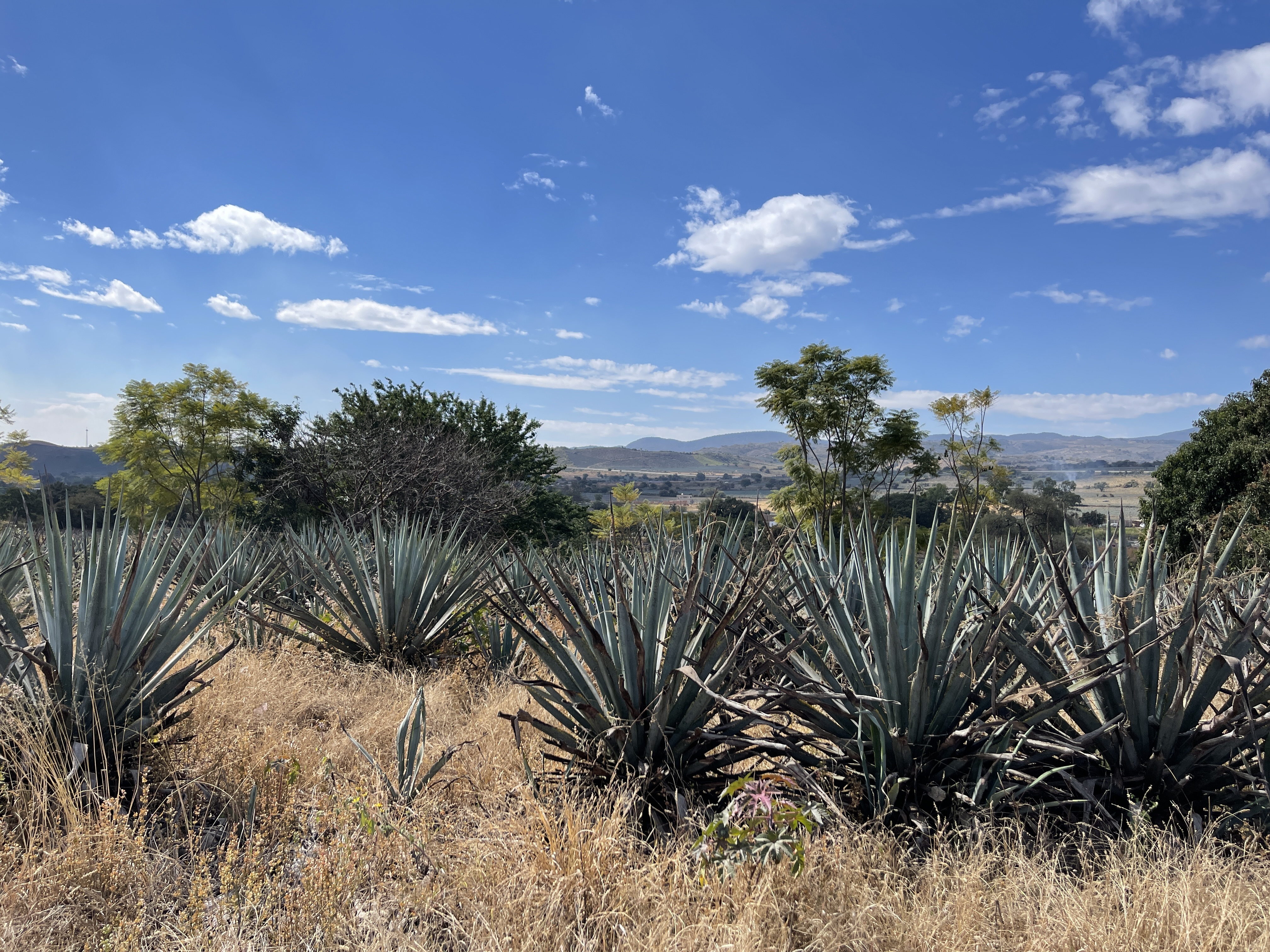 We had booked a tour of a couple of local tequila distilleries and of the the town of tequila for Saturday through TripAdvisor with a company called Agave Experience Tequila Tour. It was a small (no more than 6 people) group tour that stopped at two small Mexican owned distilleries, provided breakfast and dinner (11:30 a.m. and 5 p.m.) and dropped us in the town of Tequila for about an hour. At 10:30 a.m. our driver, Monse, picked us up and we found ourselves traveling with four young ladies, two who knew each other and two who did not. The two who knew each other were fresh off a long night out and did not talk much in the beginning due to their hangovers. (Oh to be young and stupid again!) The third, Emma, is from Toronto and is avoiding the cold by working remotely from Mexico (with her cat) for four or five months. Samantha, the fourth, is from Napa and works in the wine industry. She and her husband have their own vineyard Tectonic Wines, which I am shamelessly plugging here. Go buy some of their wines. Samantha is here learning Spanish for a month. Monse’s English is great and she managed to keep the conversation going by asking lots of questions and sharing her knowledge of the area. She had many suggestions for places to eat, drink and things we should do.