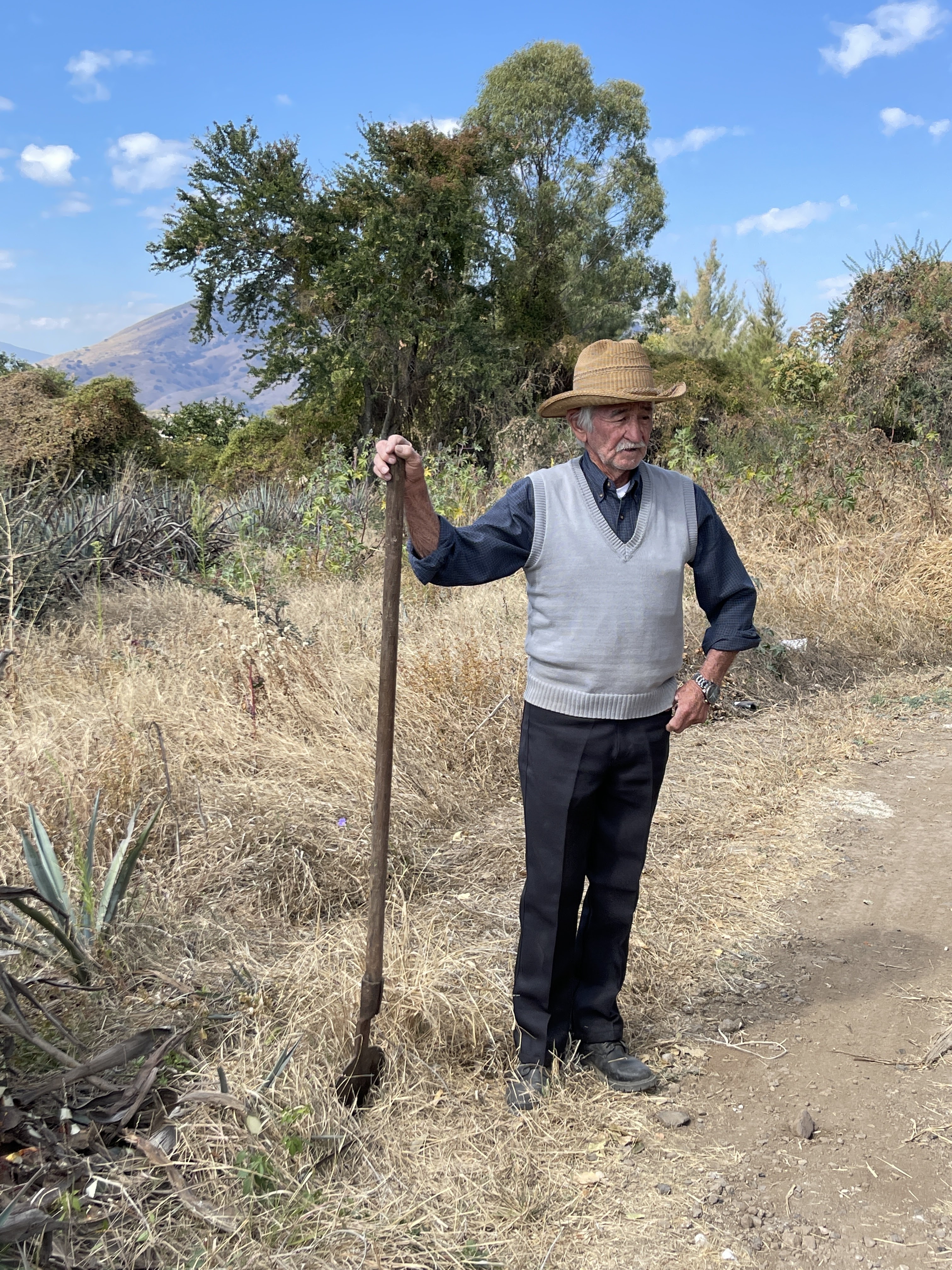 We headed for an agave field that is owned by the first distillery – Casa Marengo (NOM 1560). Monse explained how the agave was harvested (the leaves are cut off using a tool that looks somewhat like a flattened and sharpened spade), that the harvesters are called jimadors, and that the plant needs to be about seven years old before it is ready to be harvested. The jimadors need to harvest 5 tons of agave a day each and work from 7 a.m. to 1 p.m.