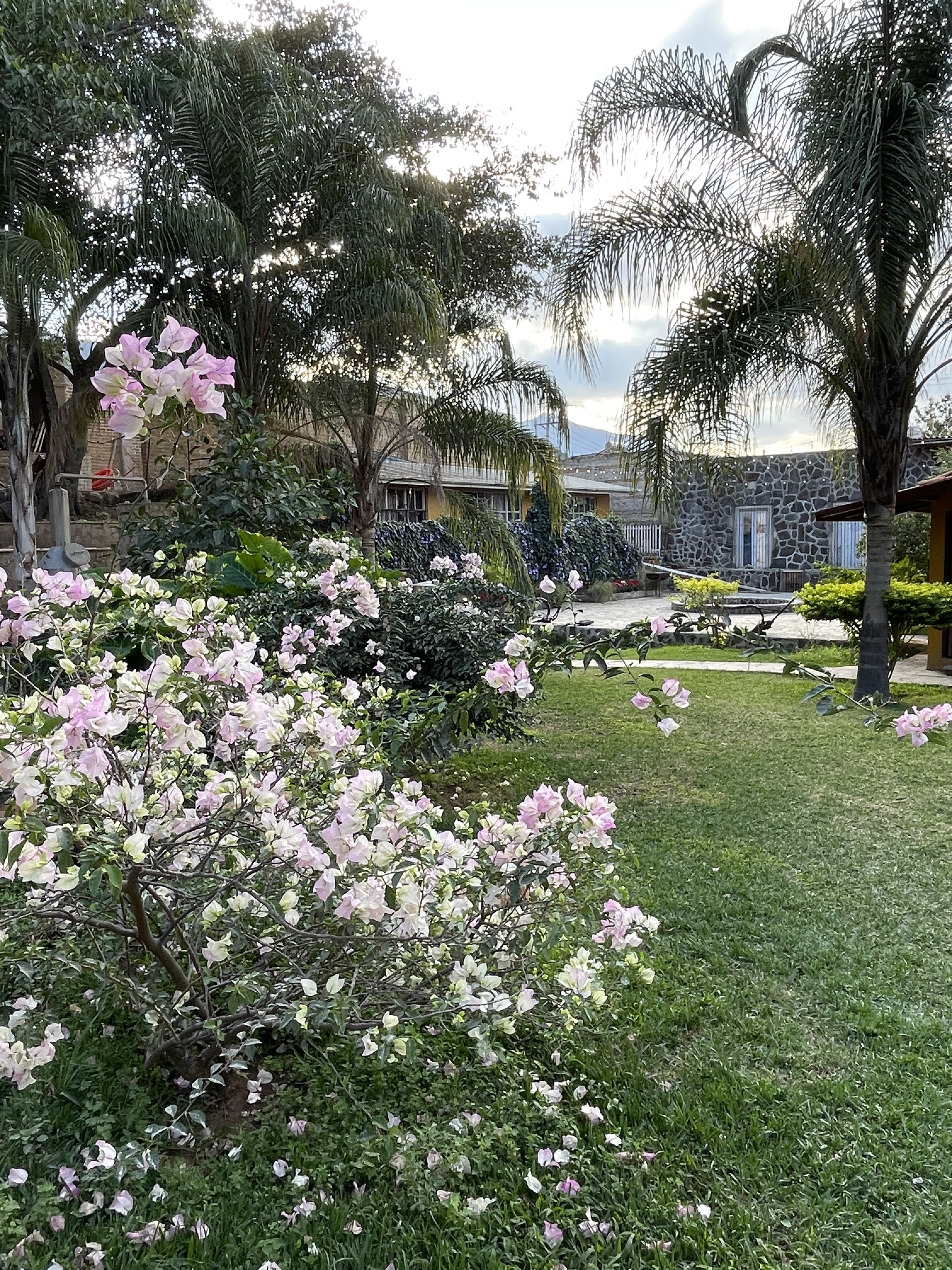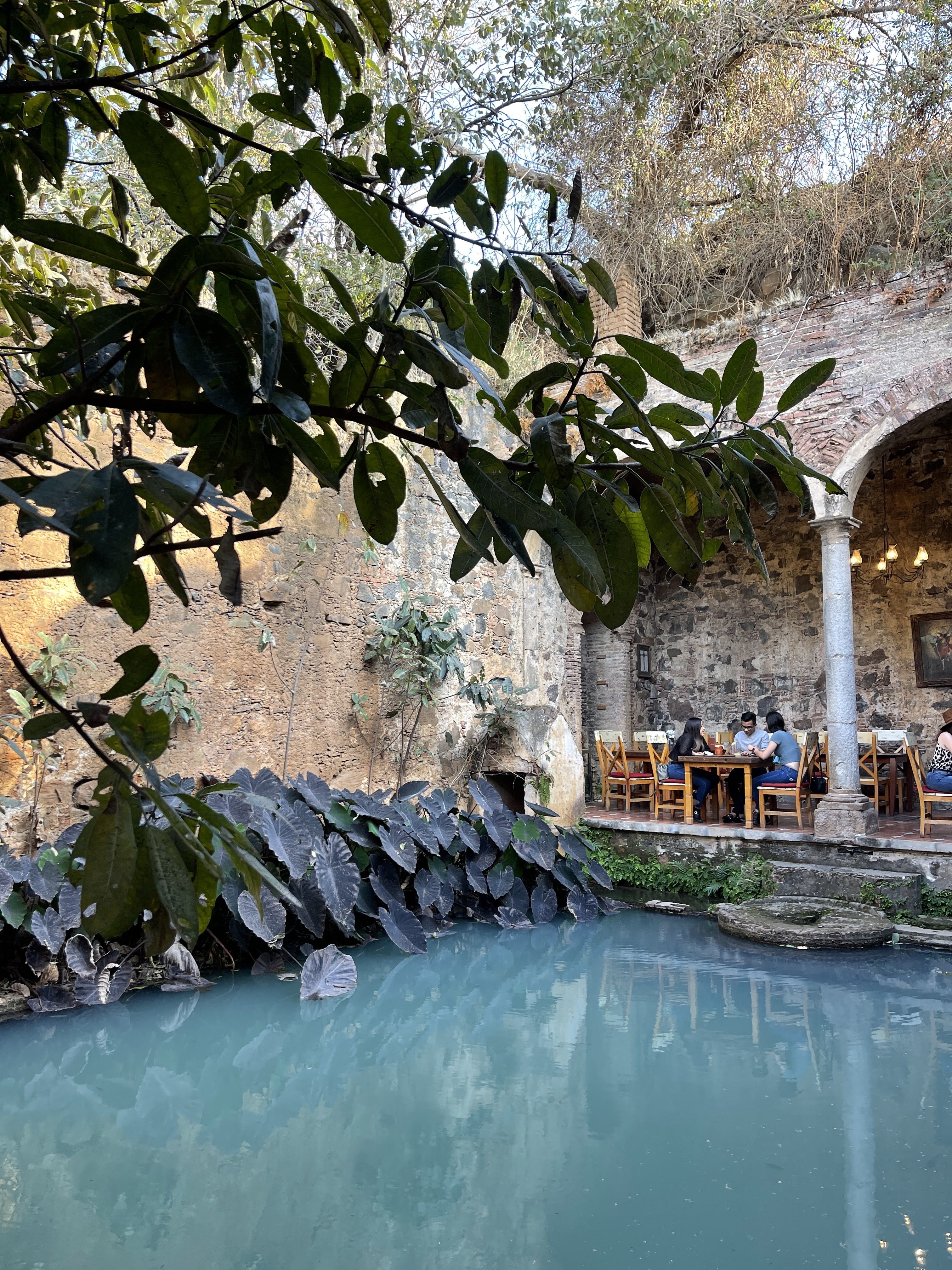 We headed from Cava de Oro to a restaurant called Ruinas El Chimulco. It is a pueblito called Amatitan and it perfectly encapsulates what we have found in Mexico. We parked at the top of the hill when we entered the village. There were a bunch of nondescript houses on the main street. We suddenly stopped and entered through a doorway and we were in a beautiful, park-like courtyard. It was gorgeous. I ordered a shared meat platter and a chicken mole with the two ladies from San Diego. Everyone else ordered some for themselves and some for the table. We had a huge amount of delicious food, most of which we finished.