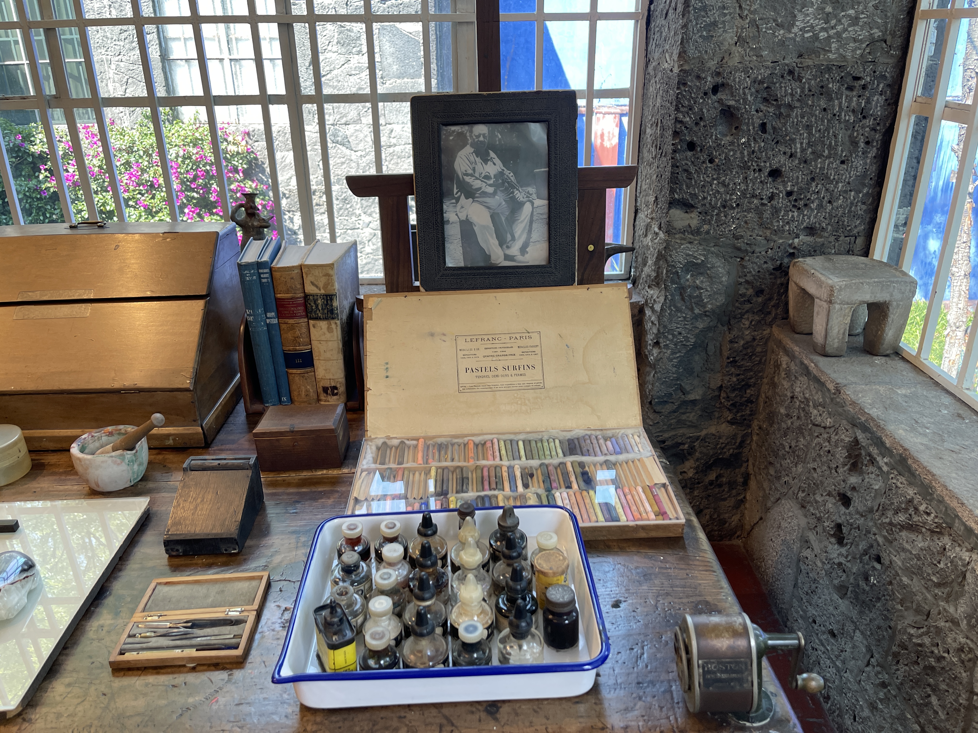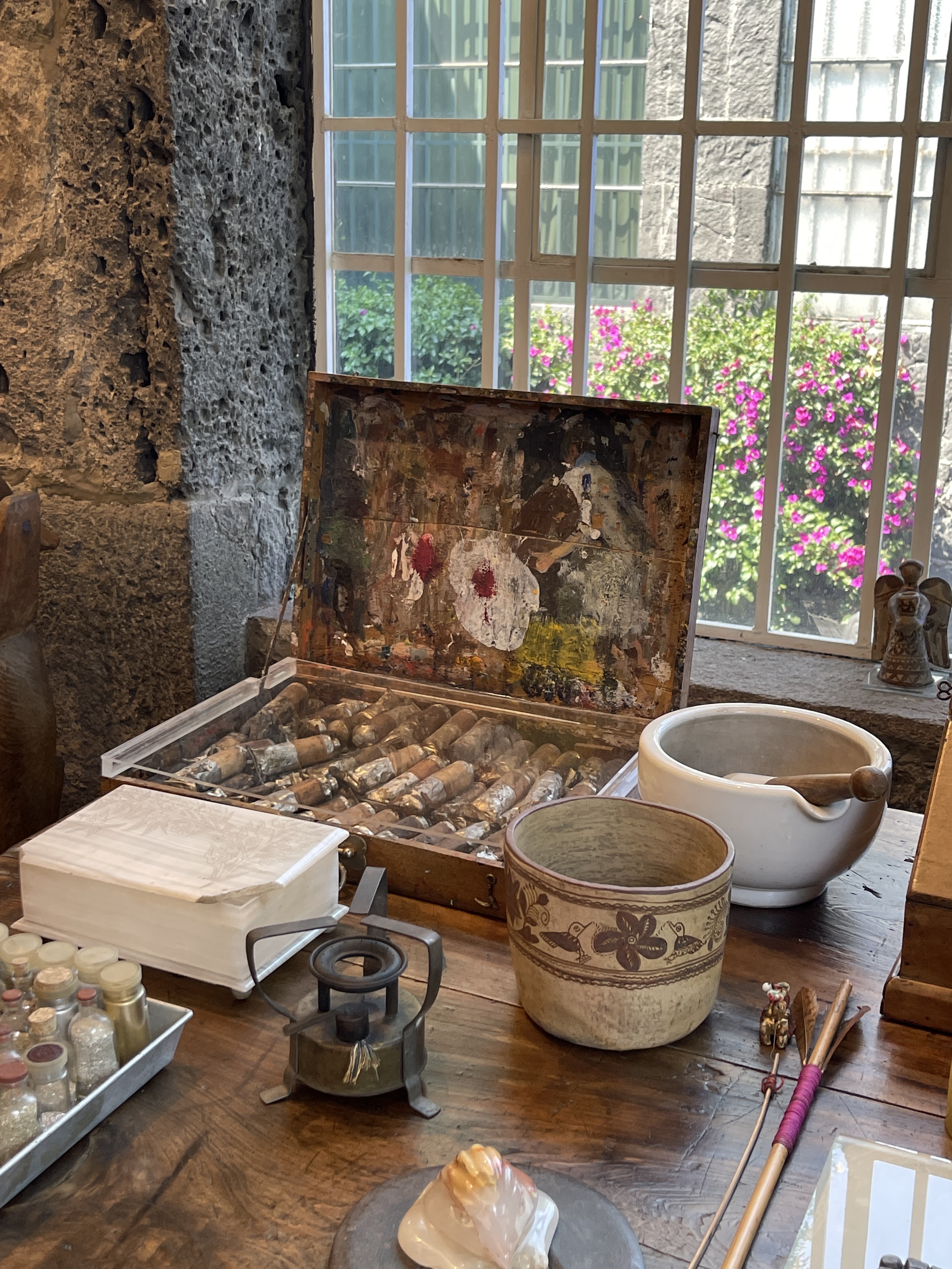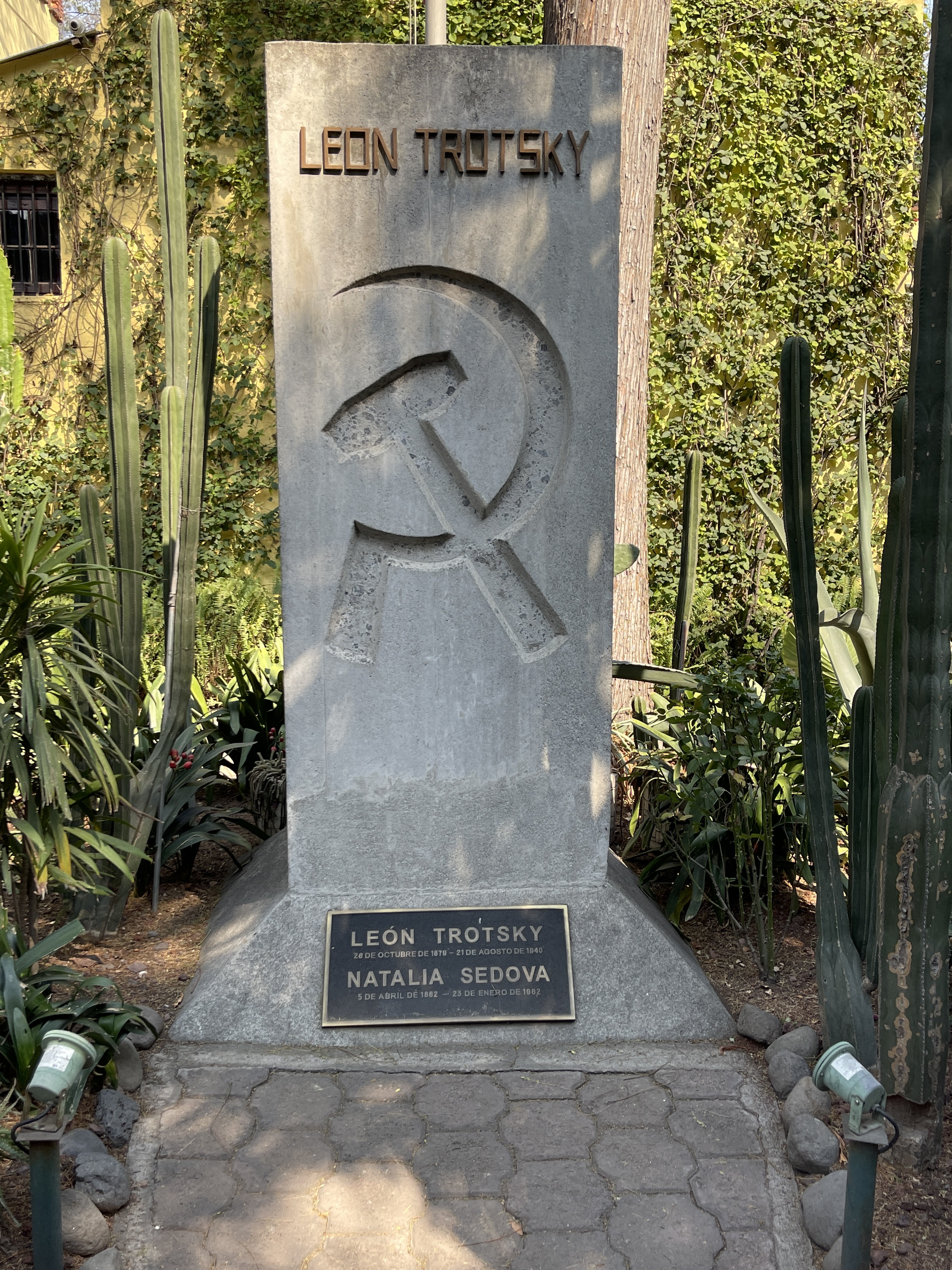 Just a few blocks from La Casa Azul is another home turned museum, that of Leon Trotsky. Frida, Diego, and Leon were well acquainted. Trotsky is buried at this home, where he was assassinated in 1940 after being exiled by Stalin. Luckily, I did take a picture of his gravestone. His second wife, Natalia Sedova, is buried there with him although she outlived him by 22 years (A two-fer in our Dead Person Bingo game!).