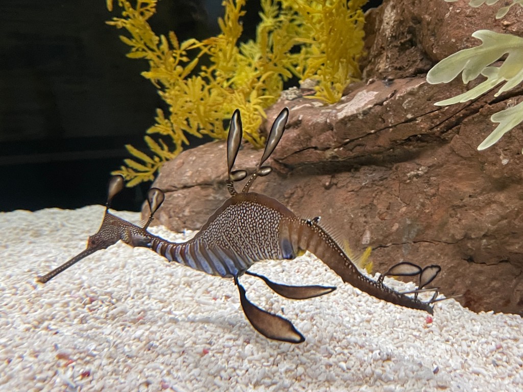 My favorite was the sunfish – well and also the aquarium’s mascot who is a goofy-looking scuba diver named Vasco (of course his name is Vasco) – but the rays are always amazing to watch as they fly through the water. There are vantage points to view the main aquarium all around and everywhere the habitat is a bit different and so are the fish.