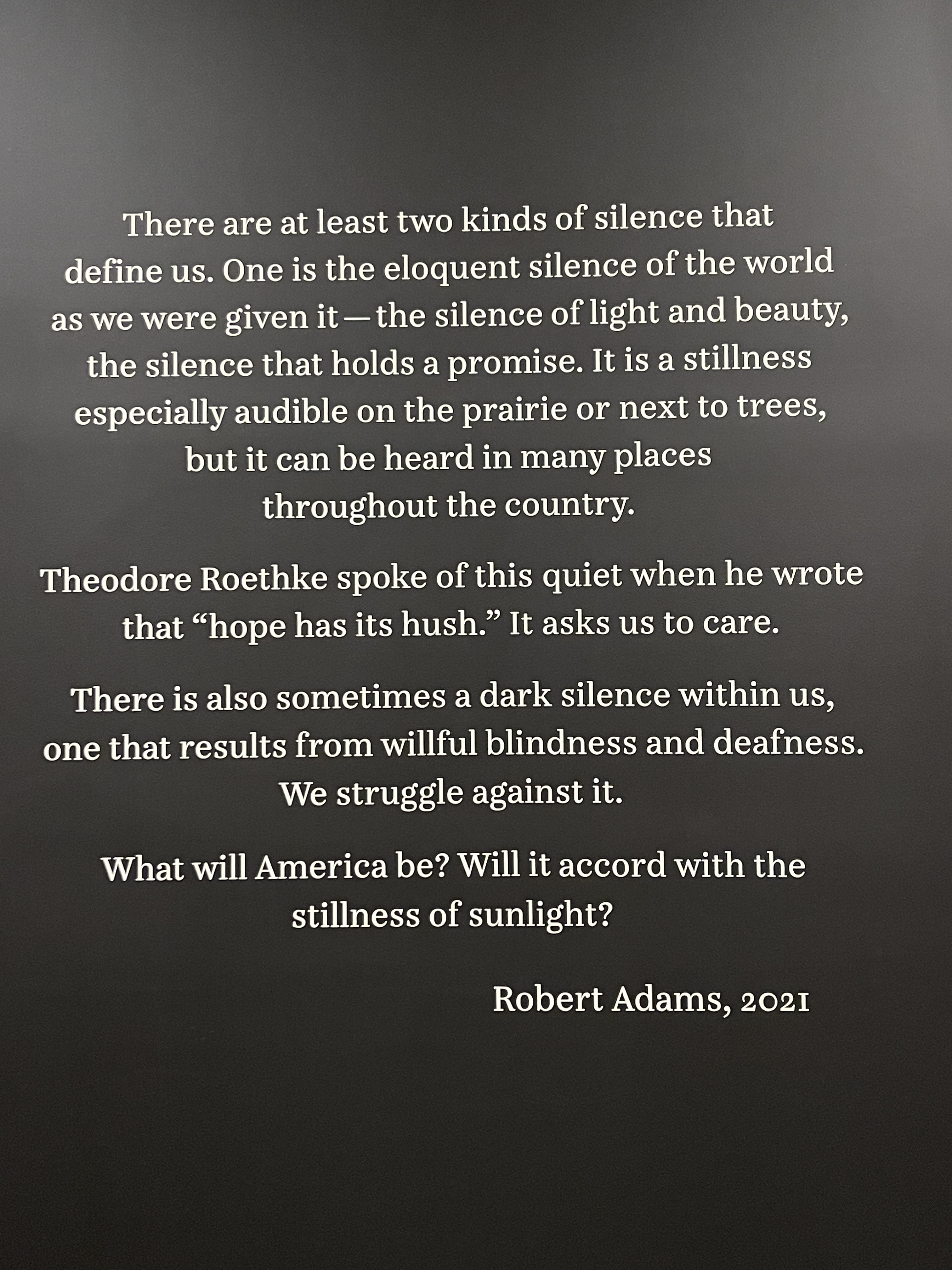 Robert Adams (no relation of Ansel as far as I know except for the black and white America photos) documents America (good choice for the National Gallery, huh?) in starkly beautiful or horrifying images of nature and the destruction of it in the pursuit of suburban life. I spent more than an hour in the exhibit and I can still see the images in my mind’s eye. I wish I could make pictures like that! The museum also reminded me how nationalistic and provincial Americans can be. Yes, it is the National gallery, but would it be so difficult to translate the descriptions into Spanish, at least. I overheard two French women commenting about the lack of other languages. I’m going to assume there were audio guides in other languages, but I don’t know.