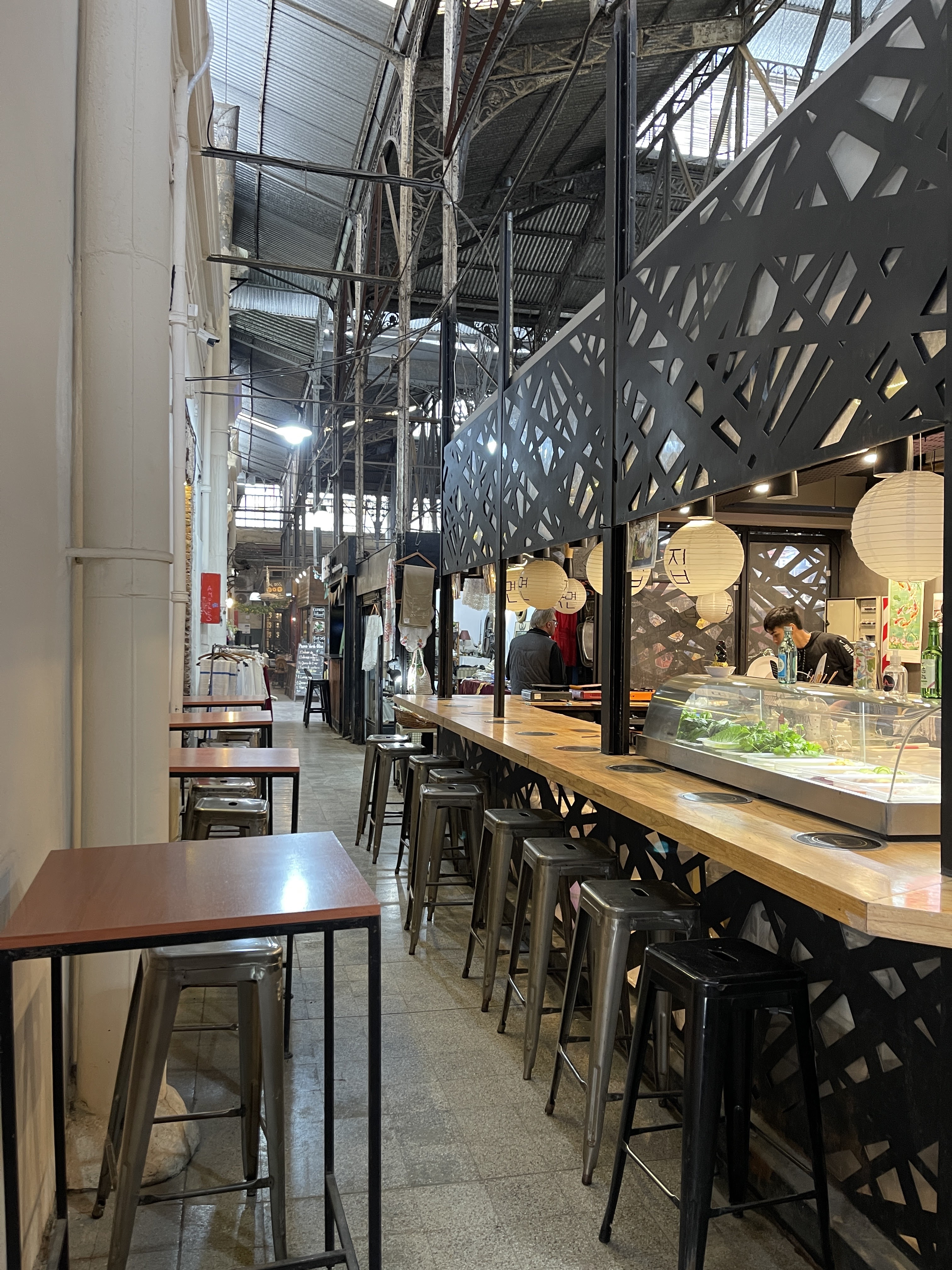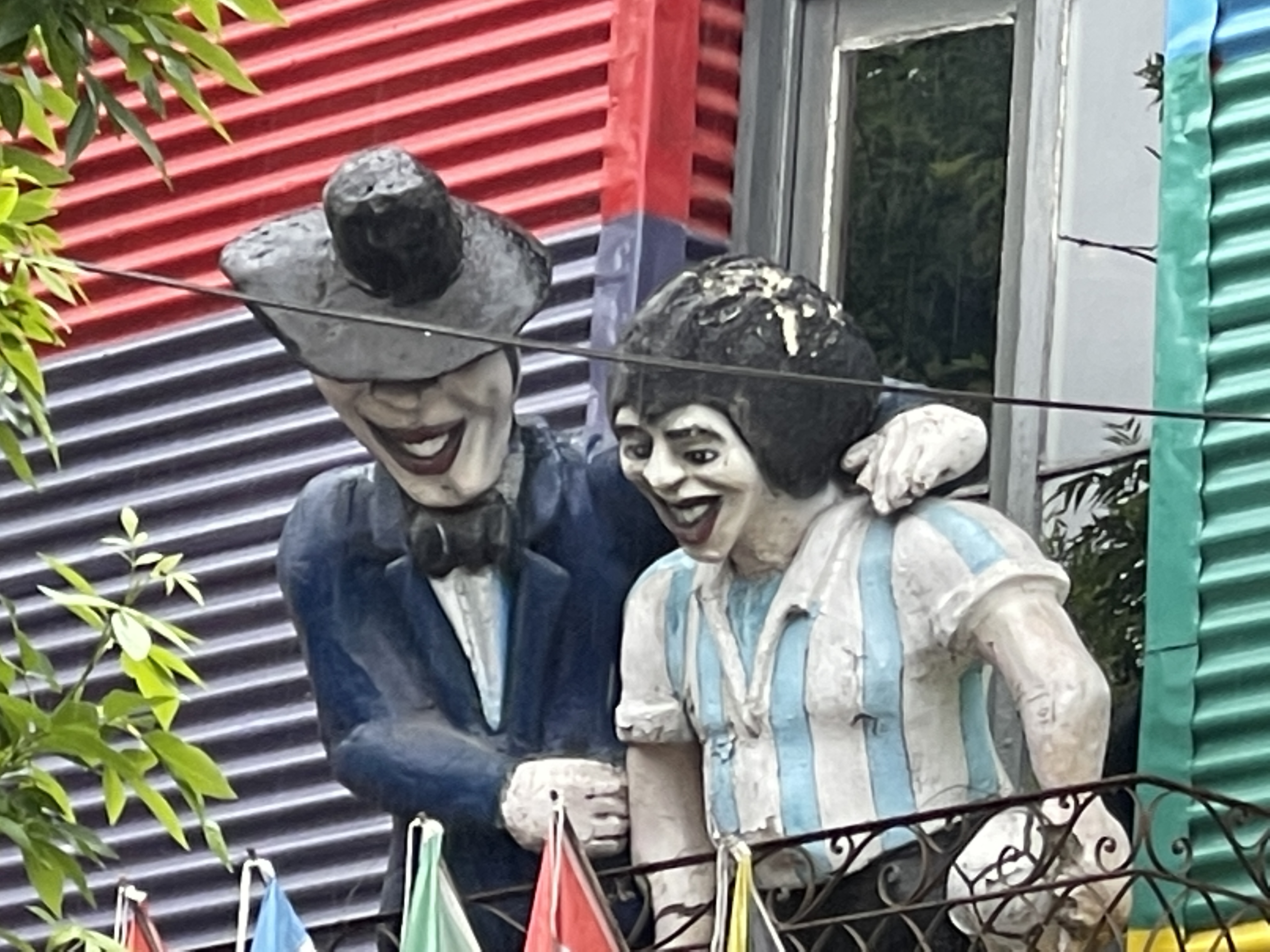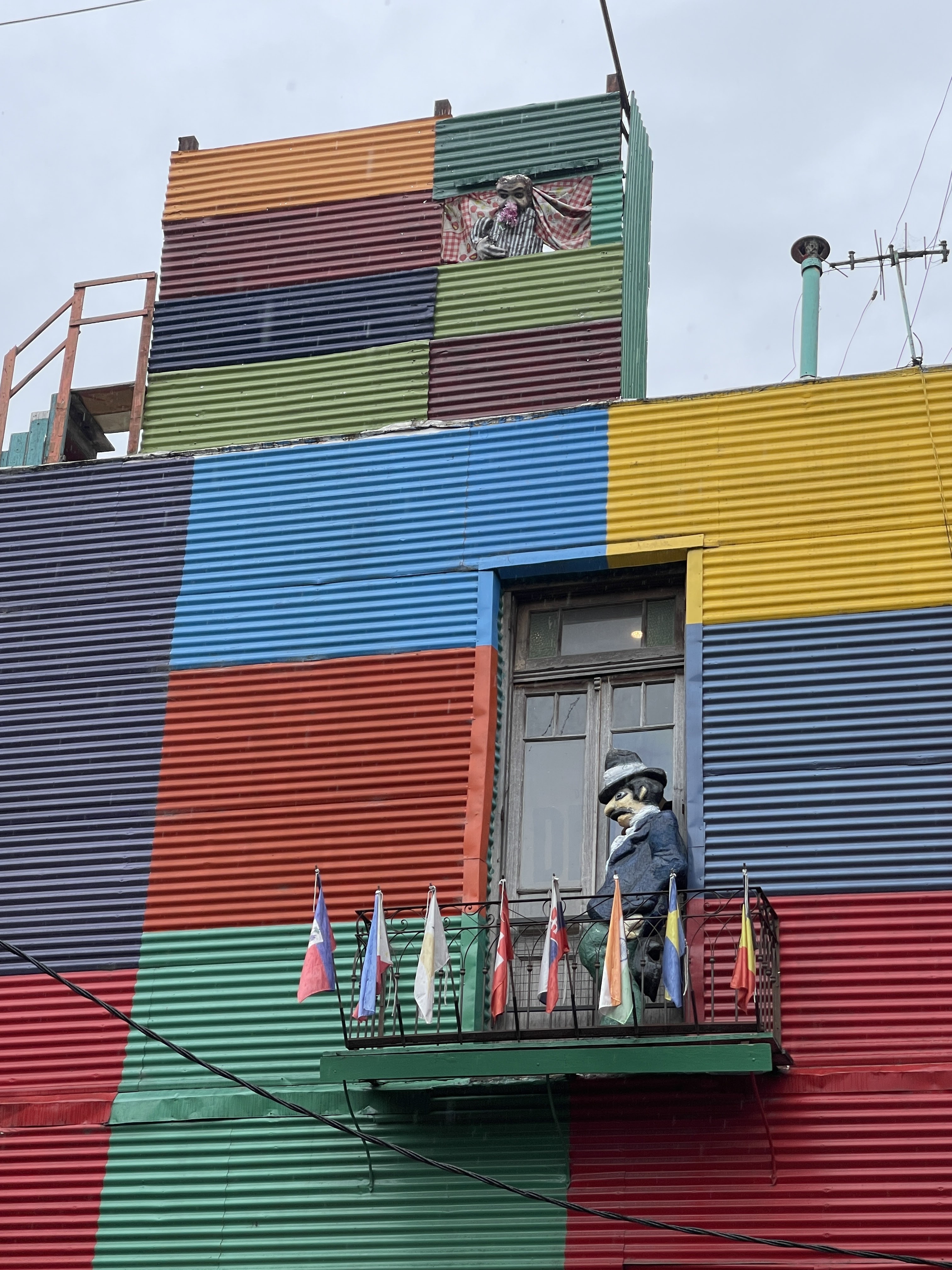 Saturday we decided on a death march to touristaville: La Boca with a stop at the Mercado de San Telmo. It was supposed to be cloudy all day, so it started raining and got worse and worse as we got to La Boca. No big deal because it was just really touristy with colorful buildings, so we called an Uber and headed back to the mercado. It’s really a combination flea market and fancy food court (we love a fancy food court). We sat down and ended up having a long conversation with a couple who are from Argentina and Bolivia, but have traveled a lot and now live in the States. We meet so many interesting people. It’s all part of the fun. Speaking of interesting people …