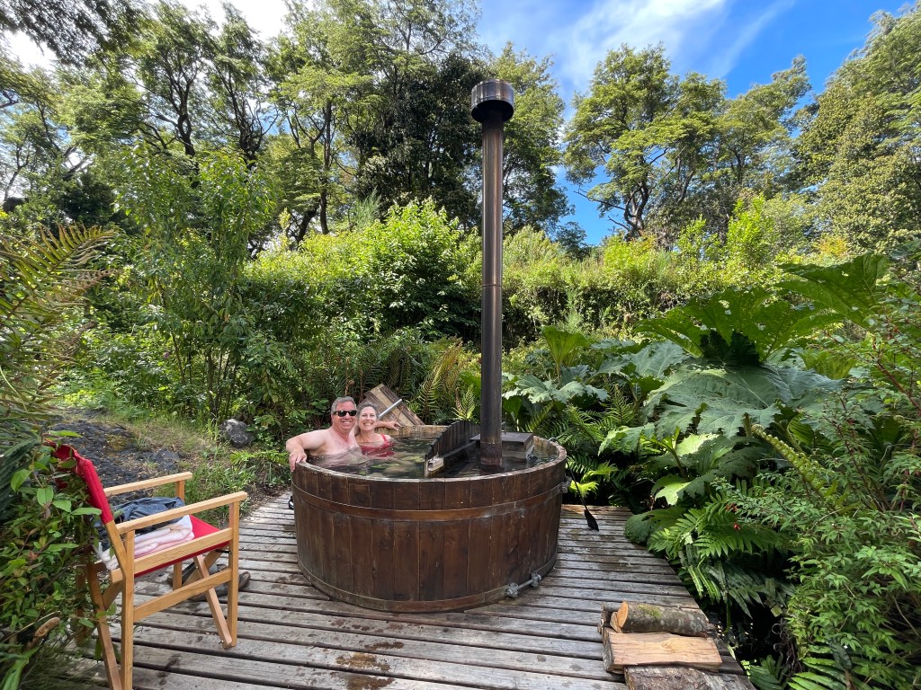 Steven and I had booked a hot tub for 4 p.m., so we relaxed for a couple of hours and puzzled over where to go instead of Peru, where there is a state of emergency. We are crazy, but not stupid. The hot tub is heated by a wood fire, so the staff tended it for four hours before it was the right temperature. The water was perfect and we sat in the wooden vats amid the trees feeling very lucky. The pisco sour and beer didn’t hurt either. Tomorrow, we go back to Puerto Varas for one last day of vacation before heading to Santiago and reality.