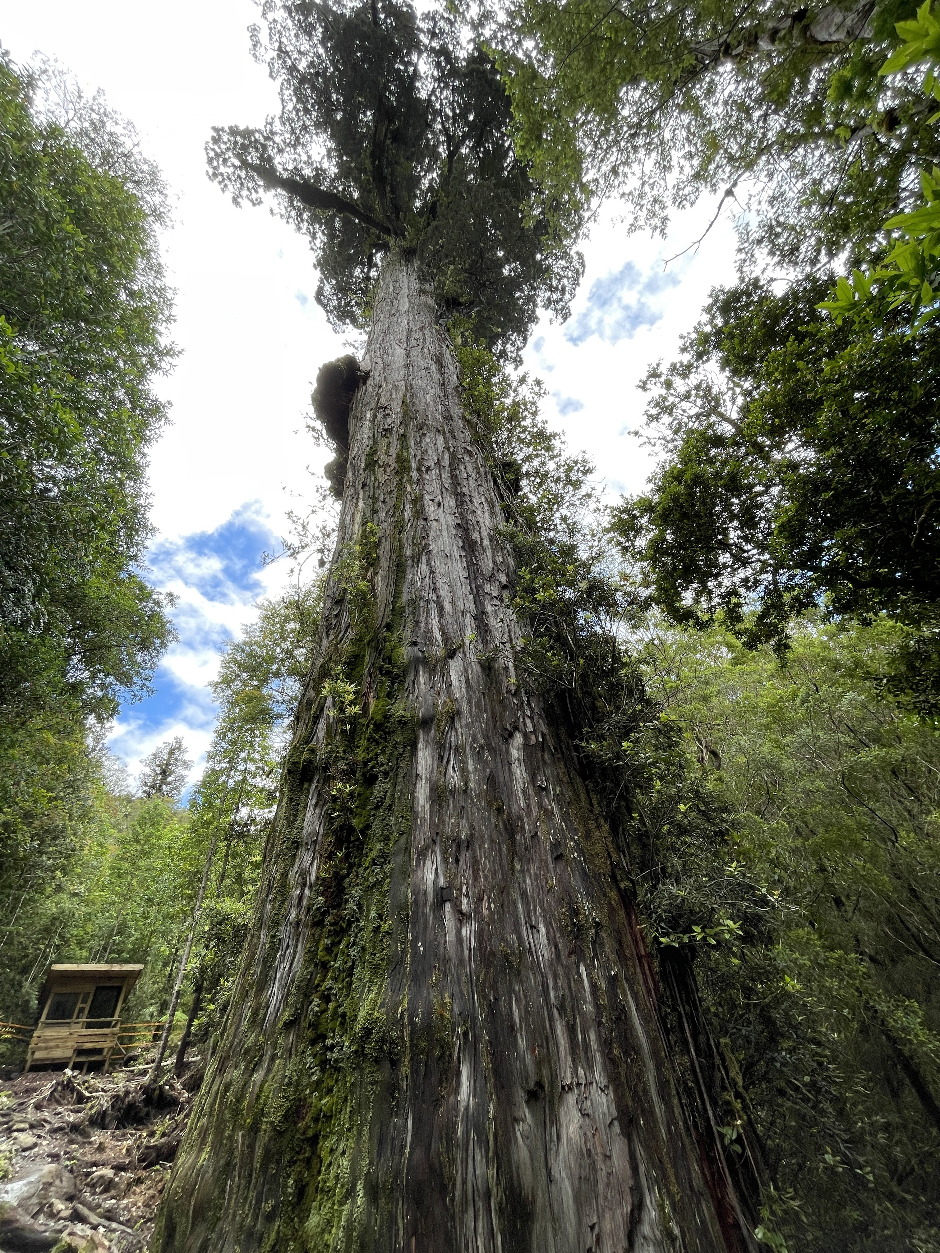 Promptly at 9, Manuela and the driver arrived. Steven and I had been trying to figure out how to get laundry done, but in a harbinger of good things to come, Manuela said she would have the driver take us to the laundry service the hotel recommended. Hmmm, closed, but Manuela to the rescue! She knew a woman who did laundry and would bring it back to us at the hotel before we left the next morning. We dropped off the dirty clothes and started on the 1.5 hour drive to Parque Nacional Alerce Andino to hike through the temperate rain forest to a 3,000-year-old Patagonian cypress or Fitzroya cupressoides, named after Robert Fitzroy of the HMS Beagle and Tierra del Fuego expedition fame. He got a mountain named after him, too (seems like a worthy reward for the effort he put in to schlep Darwin far enough so he could change our entire thinking on the way the natural world works).