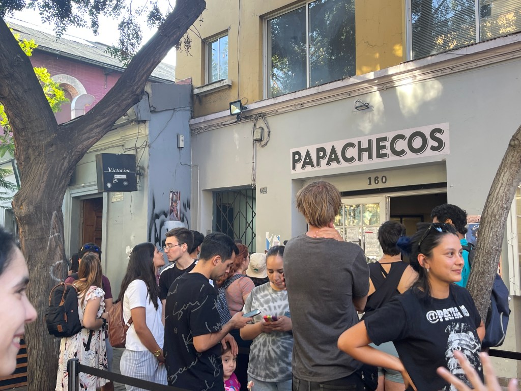 We have been wanting to go to a movie in a Spanish-speaking country for a while and we finally made it. Unless they are massively popular movies that children and illiterates want to see, the movies here are in their original language with Spanish subtitles. We saw “El Menu,” which was very strange, darkly funny, and had excellent Spanish subtitles that I could mostly understand since everyone in the movie was speaking English! The theater was an old-fashioned, one-screen affair with a balcony and velvet seats. As far as I could tell, there was no popcorn, or any other refreshments. That didn’t matter because before the movie, Steven and I went to Papachecos, which serves fresh papas fritas (French fries) in a paper cone with the toppings of your choice. I’m not talking ketchup here (although it is available). I had sauteed mushrooms and tapenade and Steven had pollo mostada (mustard chicken) and salsa barbacoa (BBQ sauce). The fries are made on the spot and the line is always long, but moves pretty quickly (for South America). Yum!