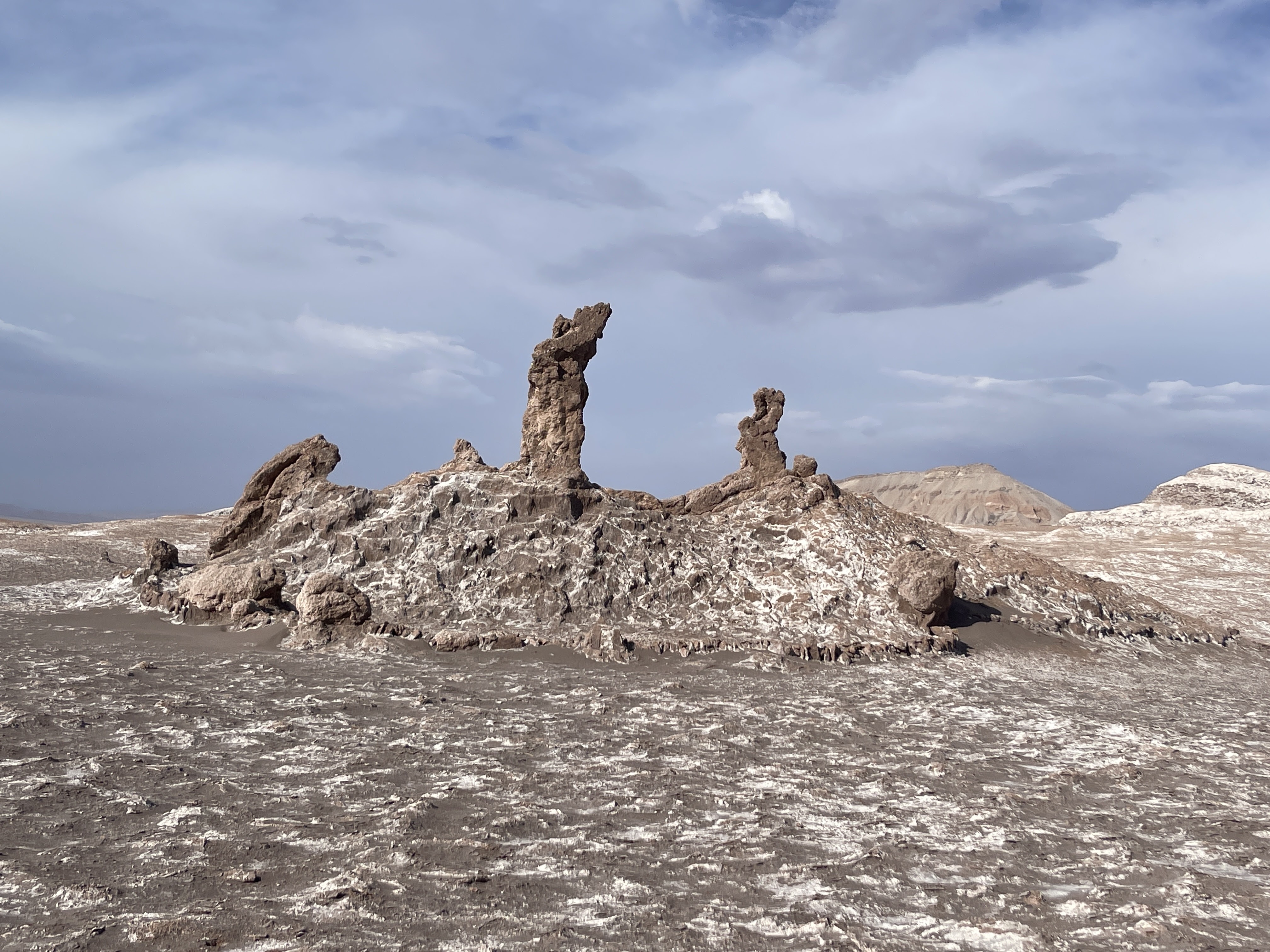 The Atacama Desert is the highest (non-polar) and driest desert in the world with an average rainfall of 0.004 inches a year. Measurable rain falls only once a century. No significant amount of rain has fallen in 500 years. It’s dry. Beautiful, strange, and very, very, dry. The driest place on Earth. Bring your eye drops and water bottles (and lip balm) everywhere. Low- sodium salt is abundant and one of the tourist attractions are the salt flats. Salt mining had been big business since it was used in the copper purification process (along with sulfur). Salt is still mined using electrolysis, but you can’t buy it in the store to sprinkle on your papas fritas.