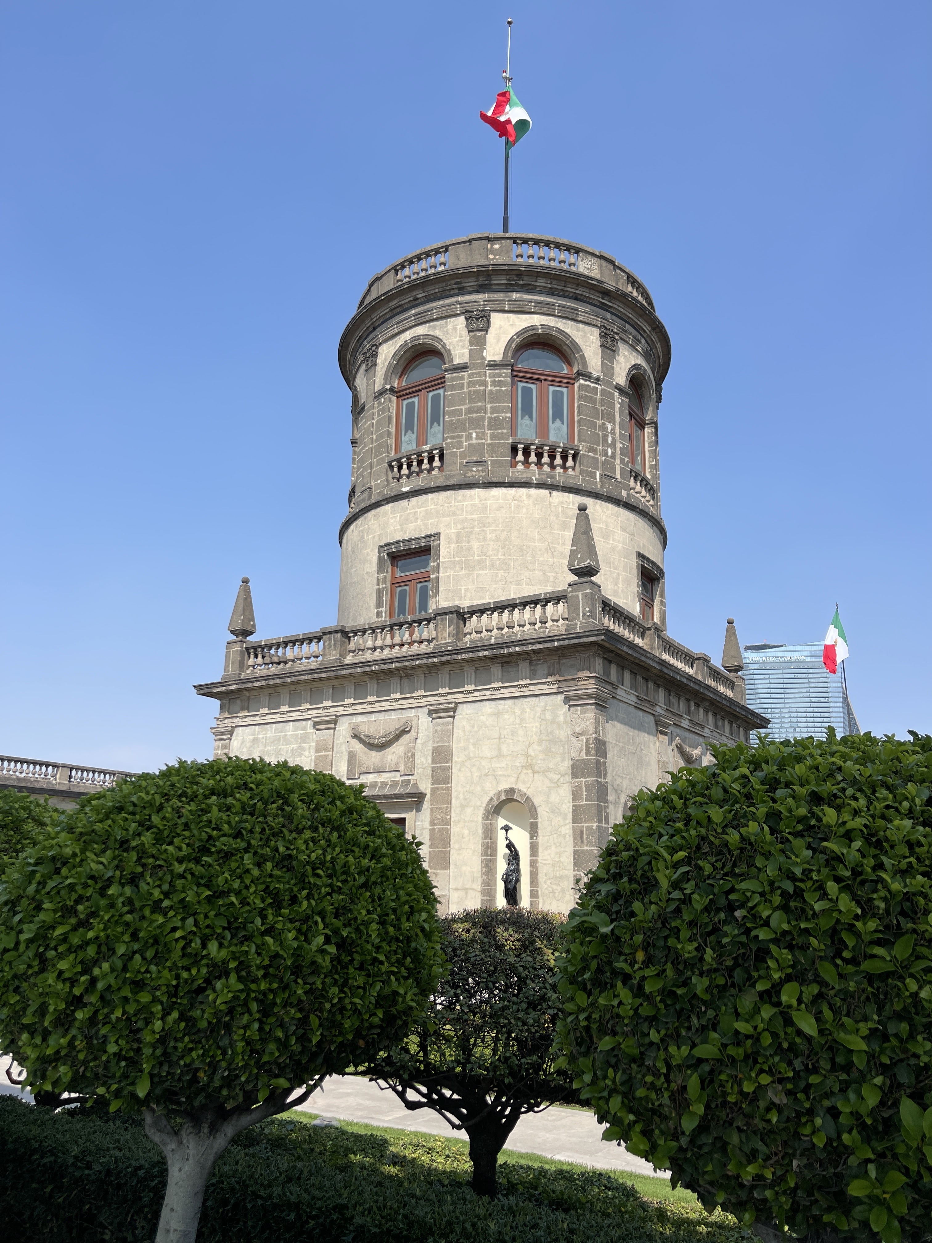 The castle is at the top of (you guessed it) Chapultepec Hill (really a rock formation) that was sacred to the Aztecs and one of the last places in Mexico City to be conquered. Of course, it’s up on a hill with an excellent vantage point.