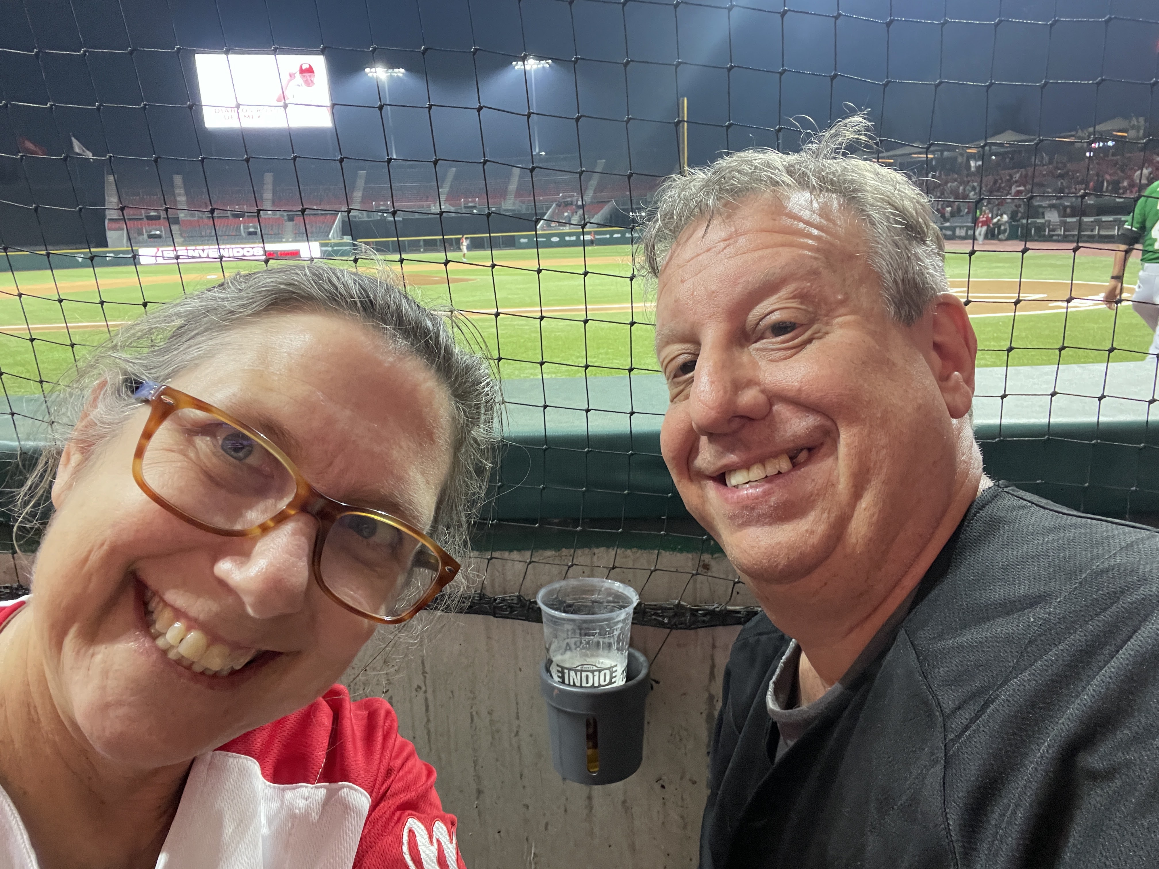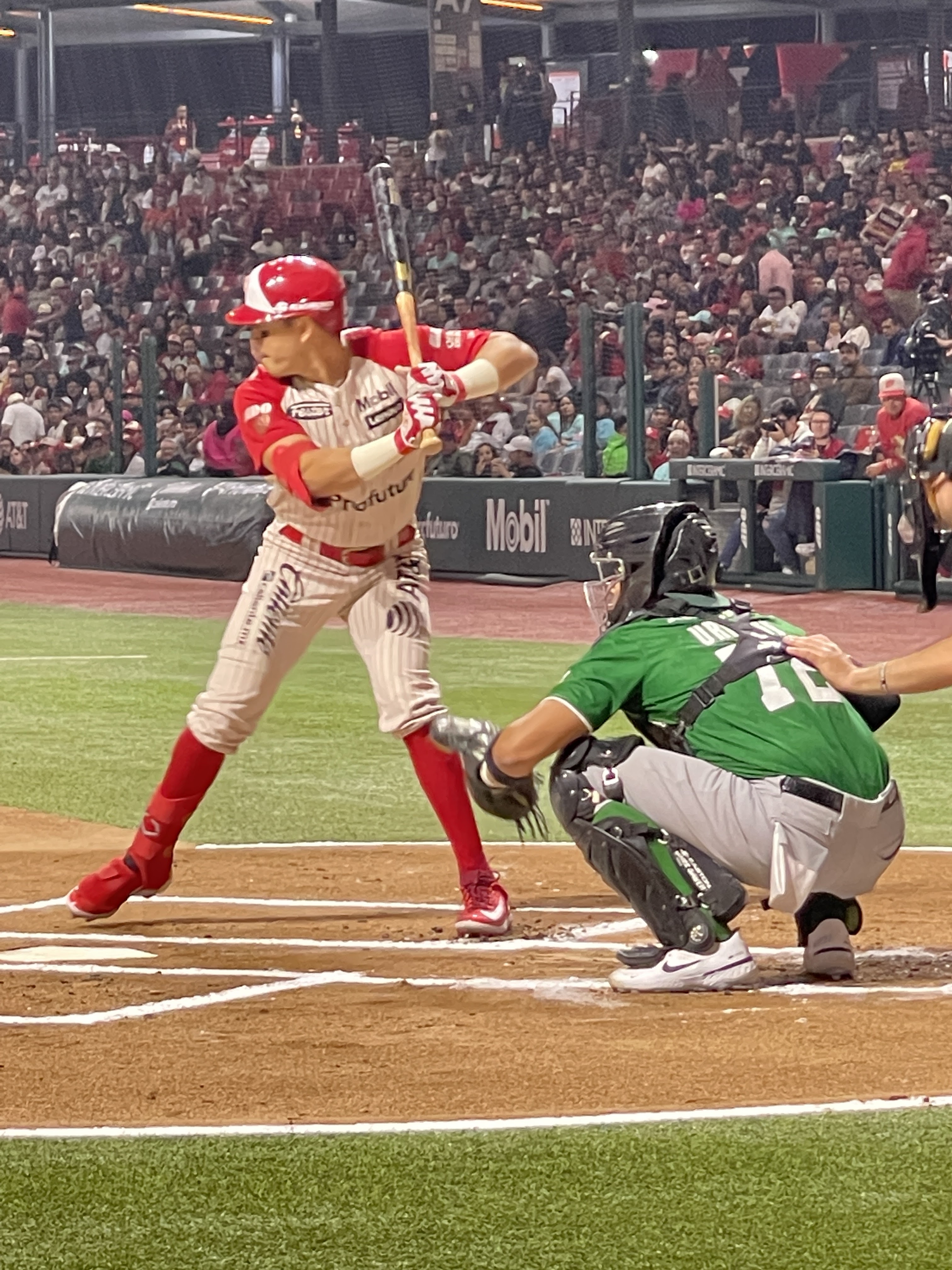 We decided to celebrate Cinco de Mayo in grand fashion — by going to see Los Diablos Rojos otra vez. Yes, of course, Cinco de Mayo is not a holiday in Mexico. Maybe it’s a small one in Puebla, where the battle took place, but the holiday that the Diablos were celebrating was May the Fourth. Seriously. The mascots were dressed in Star Wars gear and had a saber fight between innings. We were in the front row and I talked a bit with the equipment manager for the opposing team, the Generales de Durango.