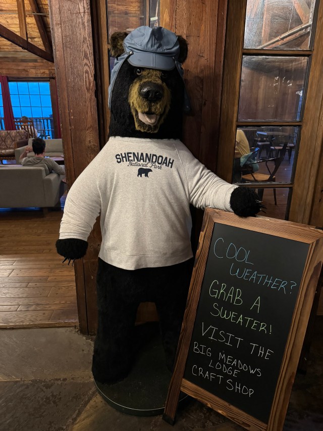 We arrived Thursday afternoon, after a stop at REI, because you always need something at REI. By the time we got settled in our adequate room (double bed, really?) at Big Meadows Lodge, it was too late for much of a hike, so we walked the mile over to the visitor’s center to ask about hikes for the weekend.