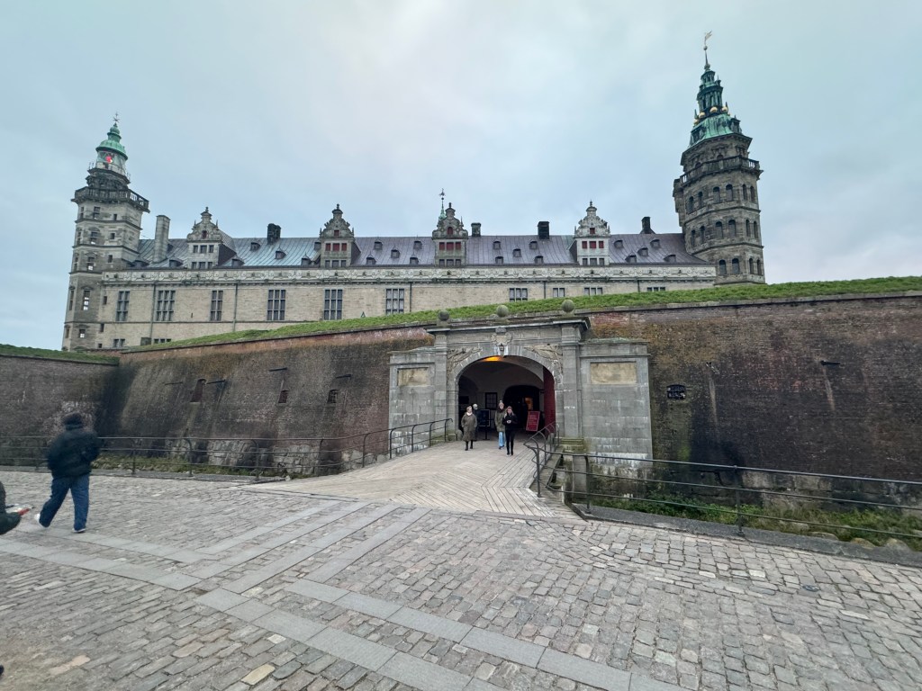 Saturday was our only full day of being tourists in Copenhagen, so we did the only reasonable thing – we went to Malmö, Sweden. It is an easy trip, we took the metro to Copenhagen airport then hopped a train to Sweden. The train took about 30 minutes to get to Malmö. We visited the Malmö castle, which has been converted to a modern art gallery. It was interesting to see how they had repurposed the space, and we wandered through the halls, then through the town of Malmö. We then decided that we wanted to see the castle that inspired Shakespeare to use Elsinor in Hamlet. It is called Kronborg Castle in a town called Helsingør in Denmark. We had two choices, we could grab a train from Malmö to Helsingborg, Sweden, then take a 20-minute ferry to Helsingør or, we could take the train from Malmö , back through Copenhagen and change to the commuter rail train to Helsinør. Please remember that Sue gets seasick looking at the water. Of course, we decided to take the train to the ferry. Better to go in a circle than doubleback, I say.