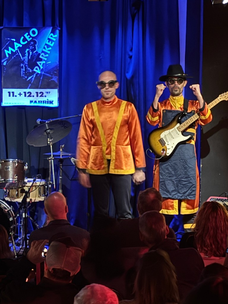 We had a reservation for a jazz show Saturday night, so we decided to head back to the apartment for a break before heading back out. The Zig Zag Jazz Club is about a 25-minute train ride from the apartment. They don’t have reserved seats, so it pays to get there early, which we did, and picked seats at the back that were up a couple of steps so we had a great view of the funk band, Booty Jive who are a tribute band to Maceo Parker. Notwithstanding their weird schtick about coming from the planet Bayou 7 (or something like that), the show was tons of fun. A young woman from Dresden sat next to us and we had an interesting conversation with her about jazz and her parents’ and grandparents’ life in East Germany. If she is reading this: Good luck with your singing and teaching career!