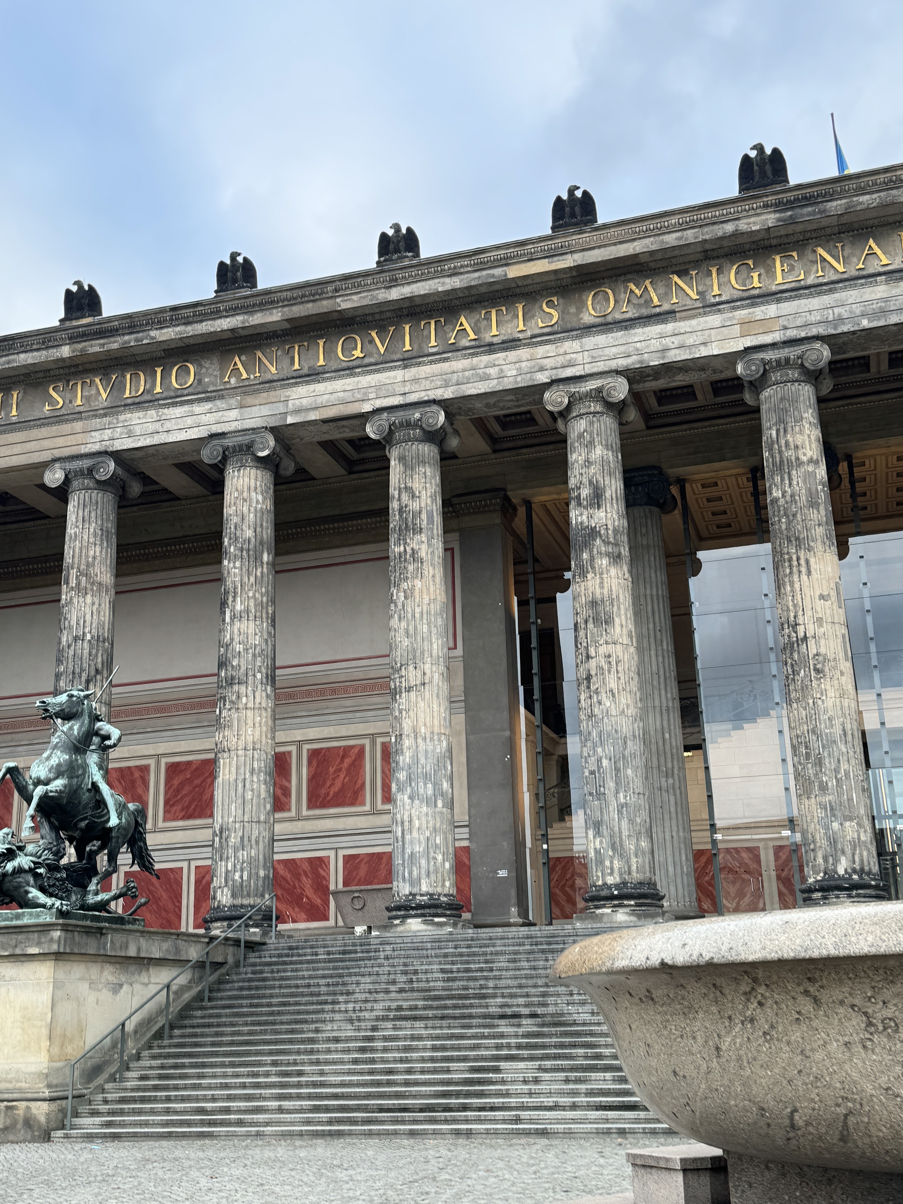 We were able to shake it off and wander the museums for about an hour. We were kind of museumed out and had movie tickets for 6 p.m., so the hour was enough for us. I mostly wanted to see the buildings anyway, but while we were there, we figured we had to see the famous Nefertiti bust and we did. I tried to count it as Dead Person Bingo, but we decided it was only Dead Person Bingo adjacent.