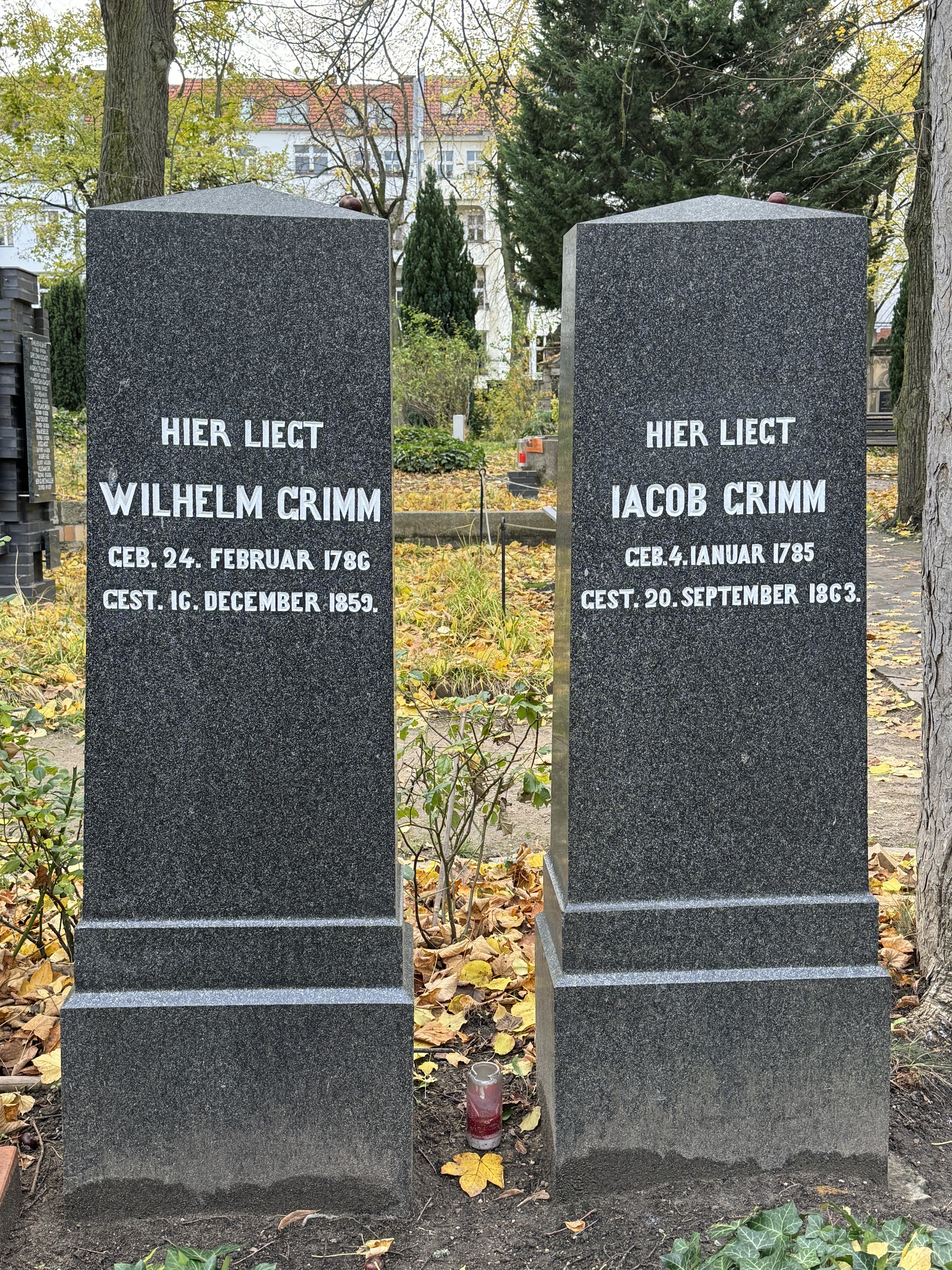Tuesday, we walked to Alte St.-Matthäus-Kirchhof or Old St. Matthäus Churchyard to pay our respects to the authors who scared me when I was a child and prepared me for Stephen King: The Brothers Grimm. After all, we had visited Hans Christian Anderson in Copenhagen. Then, we tried to go to a noodle restaurant, but, to our chagrin, it’s closed on Mondays and Tuesdays, so we had Thai food instead. It’s a tough life.