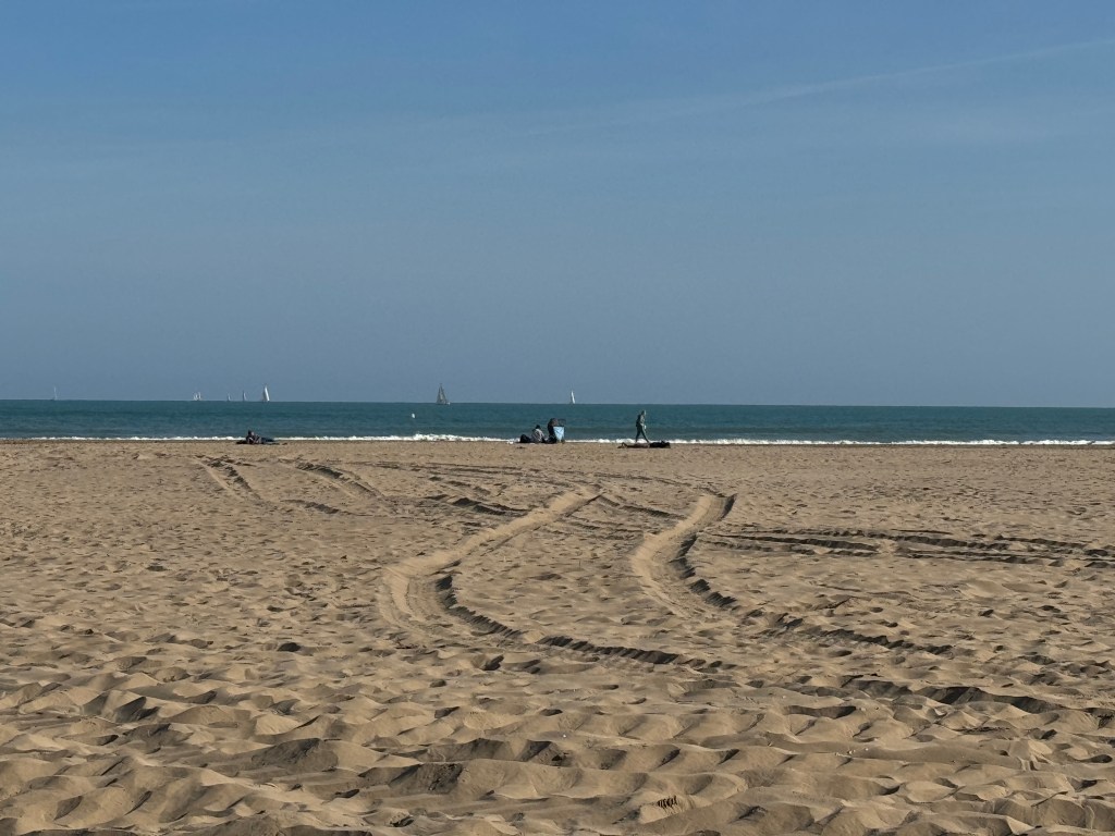 Sunday we did a modified death march — about 8 miles. We stopped at a flea market and saw the junk people here buy. Guess what? It’s the same junk that people buy everywhere. From there, we headed to the beach. It’s a lovely sand beach with a wide walking path. Abi’s friend had sent us a list of places to eat, so we had very delicious tapas and also learned that tapas salads here are large.