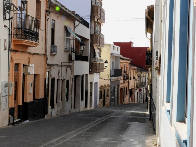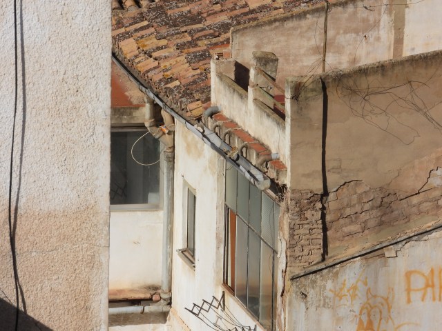 We crossed the commuter line train tracks and were in Paterna, an old town that is now a suburb of the city of Valencia. We were aiming for El Calvario, a clock tower next to the town hall that sits high enough to have a nice view of the city. Once there, we realized there was another exciting landmark we couldn’t miss just a few minutes walk away. We walked around it a few times, until we found a stairway between two buildings and made our way up to the Torre de Paterna, or Paterna Tower, which is thought to have been built by the Moors as a defense. Later, earth houses (earth houses? They are caves!) were excavated around the tower and people still live in them today.