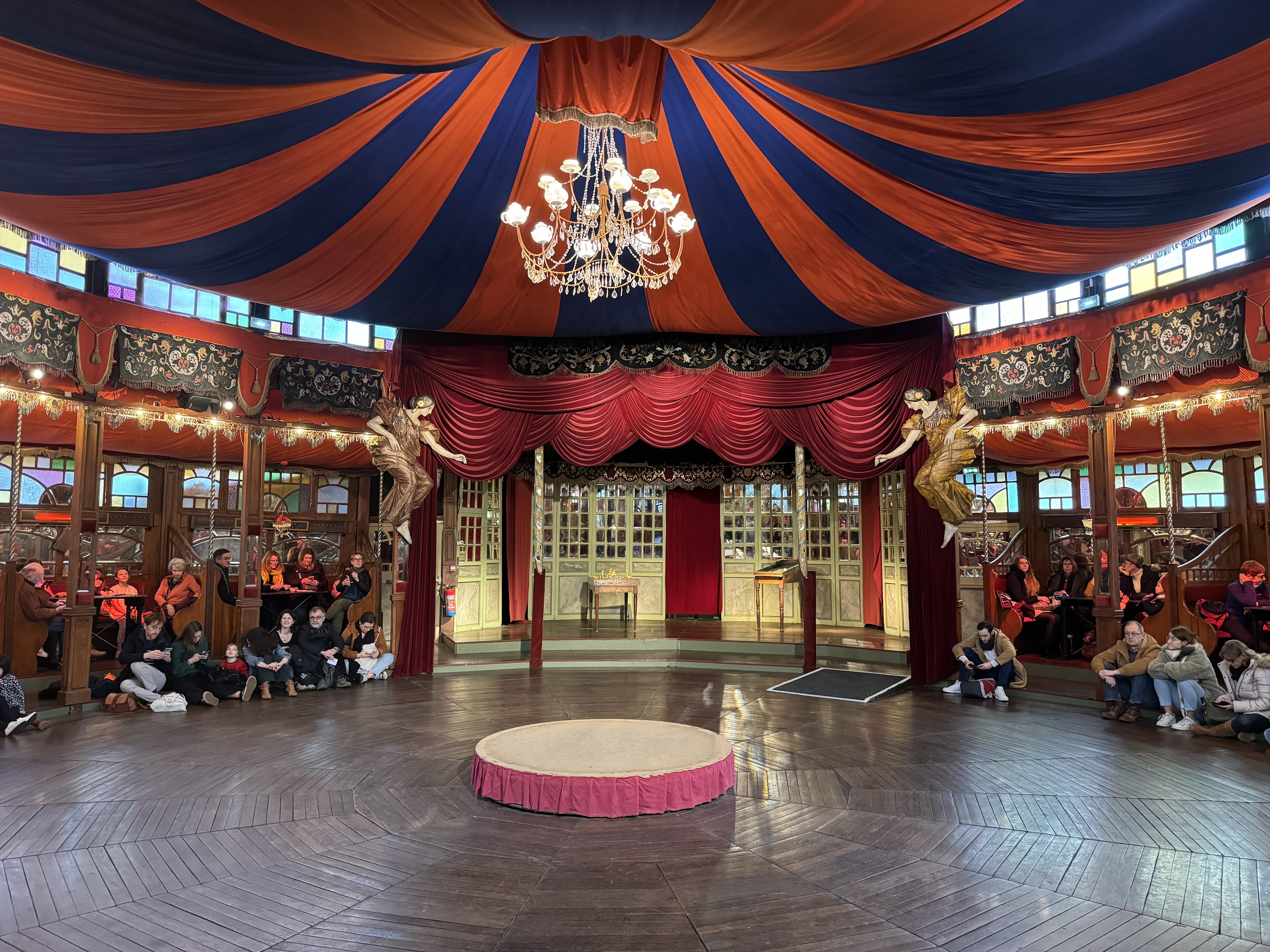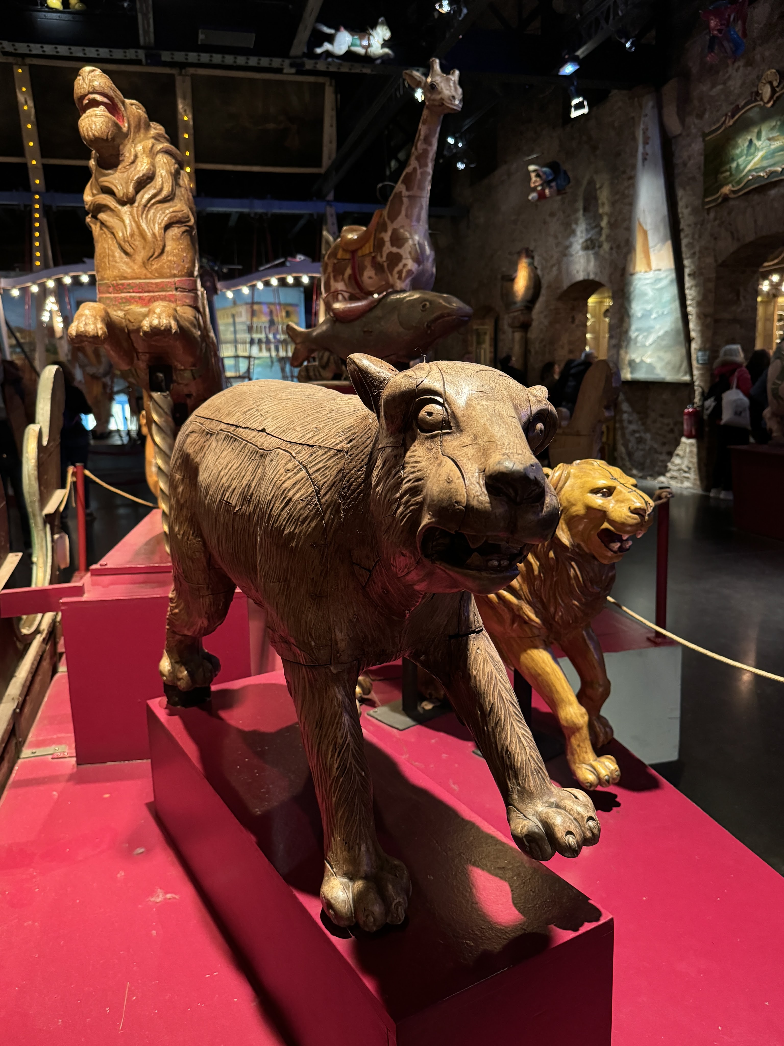 We started the New Year’s weekend on Saturday by marching our way all the way across Paris to a museum of carnival attractions called Musée des Arts Forains. It was weird and wonderful. They usually do tours of the attractions, but for the holidays, they open it up and have the rides working and various performances. There were old style games, merry-go-rounds, a house of mirrors and various cutouts to put your face through and take photos. It was very fun and interesting.