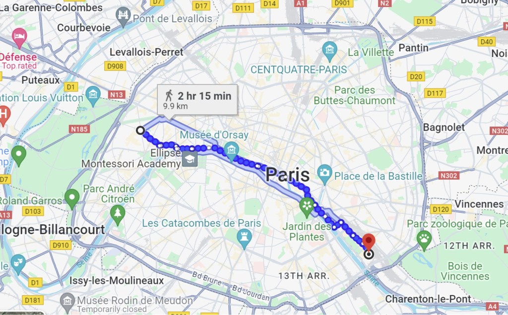 Steven forgot about our attempt to get a bagel in Paris. We saw several bakeries and landed on one nearby that had 5.0 stars. The owner and his brother were very personable and also very proud that their bagels were fluffy, unlike New York bagels. Sigh. Not really a bagel, but a delicious sandwich on bagel-shaped bread.