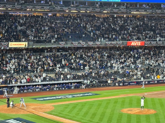 The Dodgers had won the first three, so it was a desperate game for the Yankees. Luckily for me, they won the game, and it was a rollicking good time. Unfortunately, the next night they lost the series and the Dodgers are the champions this year. Oh well.