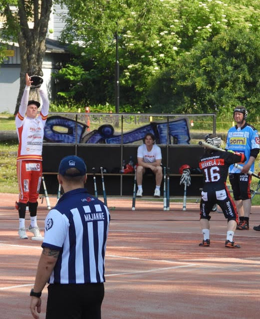 After the walk, we relaxed at a bar in the square and people-watched until it was time to head out to a game of the Finnish version of baseball or pesäpallo. While it’s a professional sport, it was very low key. Maybe 1,000 spectators sitting on general-admission wooden bleachers. If you’re interested in the rules, check out the link, but the key differences are that the pitcher stands near the batter and throws the ball straight up, the bases are somewhat in a diamond but each base is farther away from the last and hitting the ball too far is not a home run but a foul. Oh yes, and if an outfielder catches the ball, the batter is not out, but instead has three chances to put the ball in play. Or something like that. We’re not sure. We just know the home team won and we had a great time.