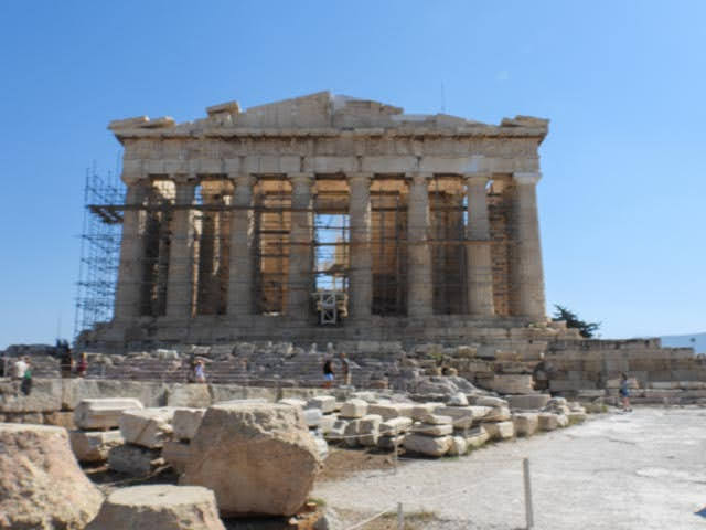 We arrived in Athens after a quick flight from Budapest on Monday afternoon. The cities could not be more different. Budapest is very green with mid-age and younger buildings set around the meandering Danube. It is a stately European city with wide streets and lots of green space. Athens is hot, dry, seemly unplanned and feels very much a rough and tumble city. The Acropolis towers over a city that has 3,000 year old ruins around random corners and under many streets and buildings.